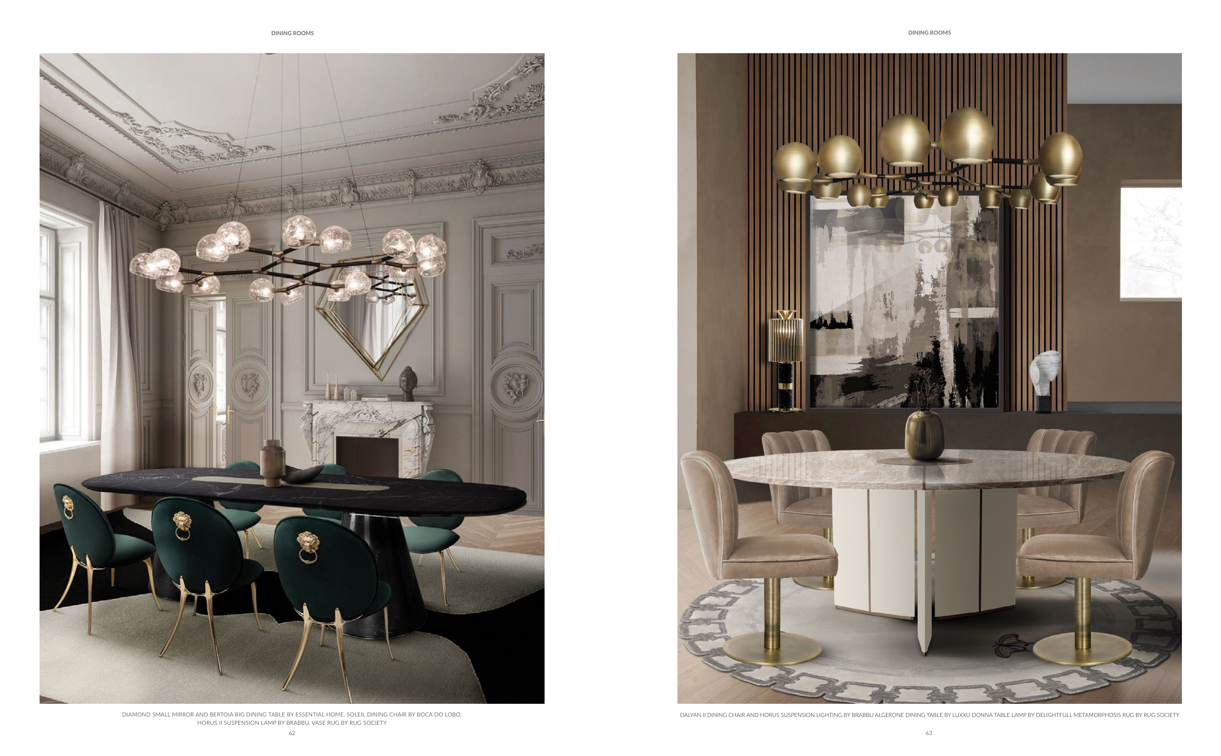 DIAMOND SMALL MIRROR AND BERTOIA BIG DINING TABLE BY ESSENTIAL HOME, SOLEIL DINING CHAIR BY BOCA DO LOBO,