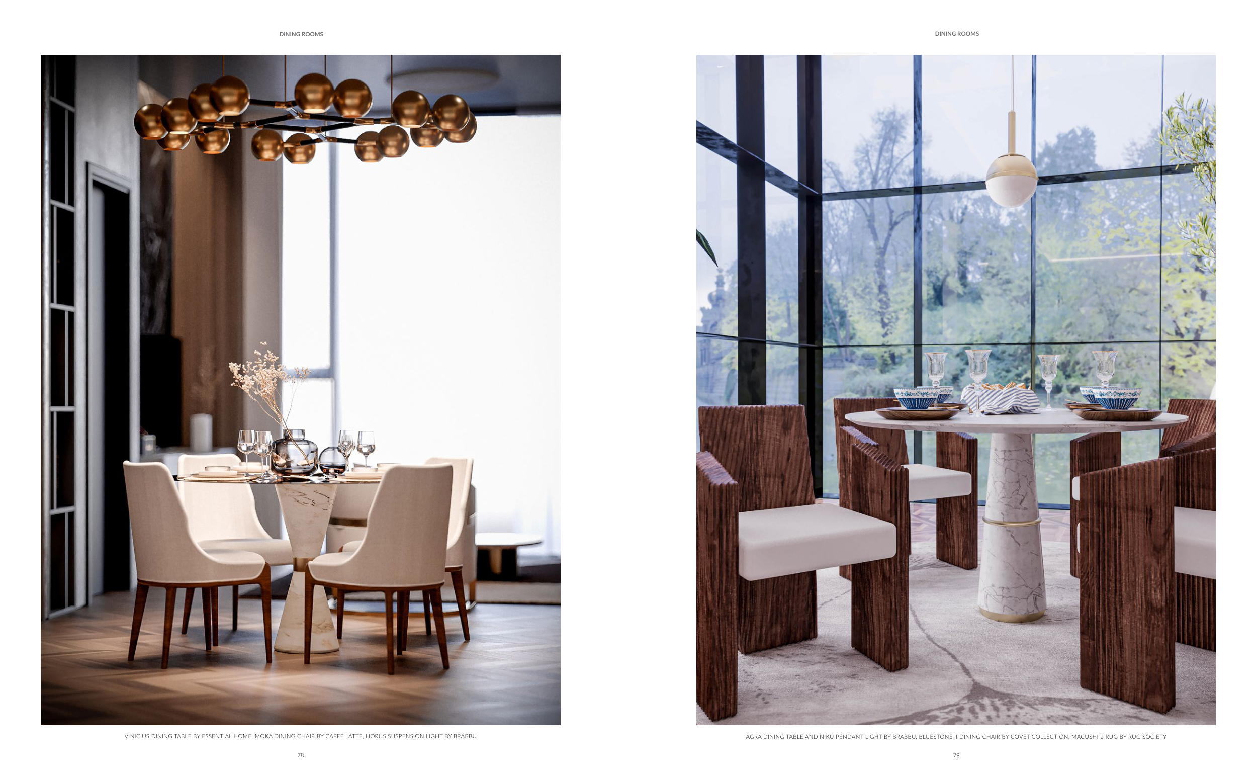 VINICIUS DINING TABLE BY ESSENTIAL HOME, MOKA DINING CHAIR BY CAFFE LATTE, HORUS SUSPENSION LIGHT BY BRABBU