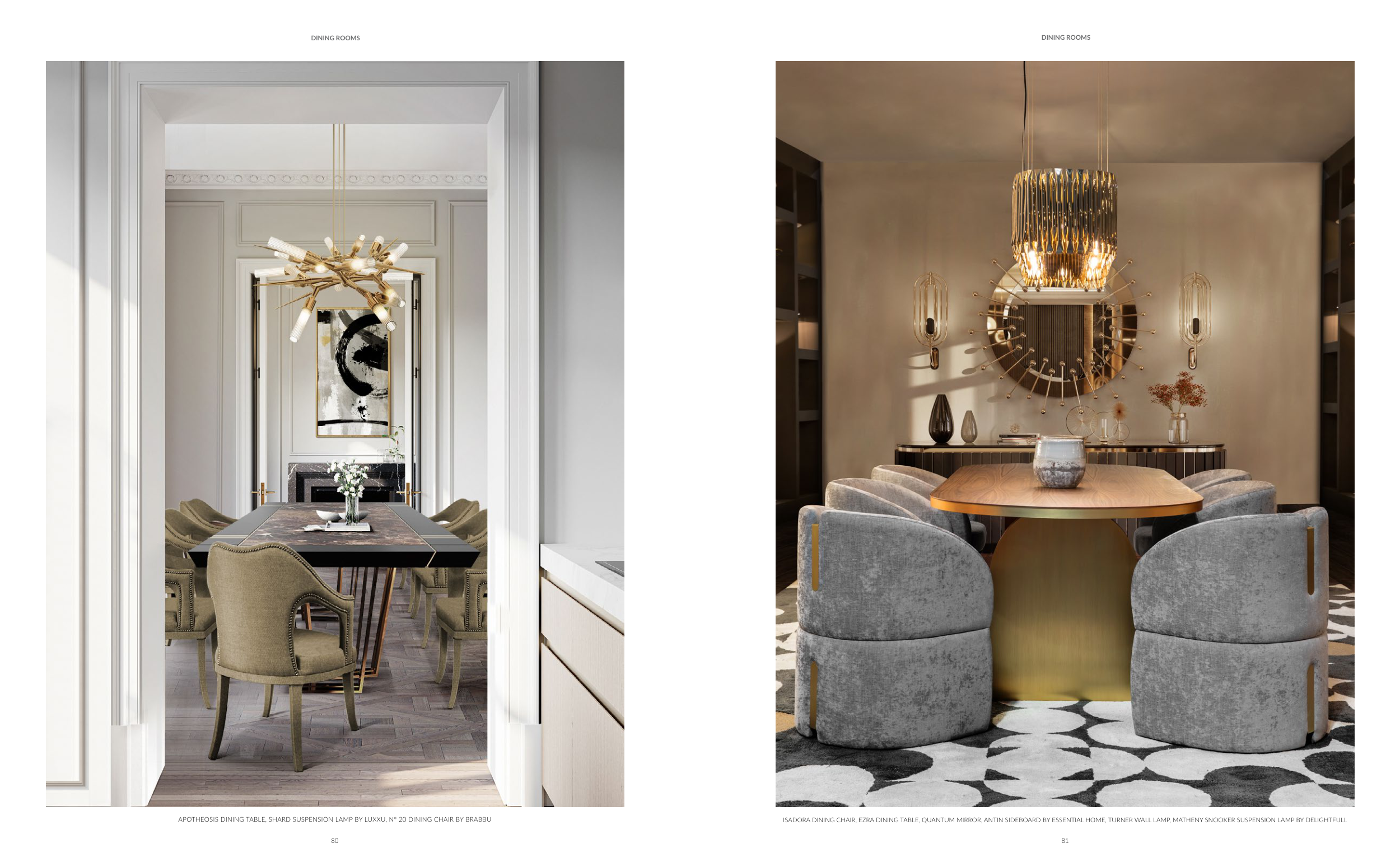 ISADORA DINING CHAIR, EZRA DINING TABLE, QUANTUM MIRROR, ANTIN SIDEBOARD BY ESSENTIAL HOME, TURNER WALL LAMP, MATHENY SNOOKER SUSPENSION LAMP BY DELIGHTFULL