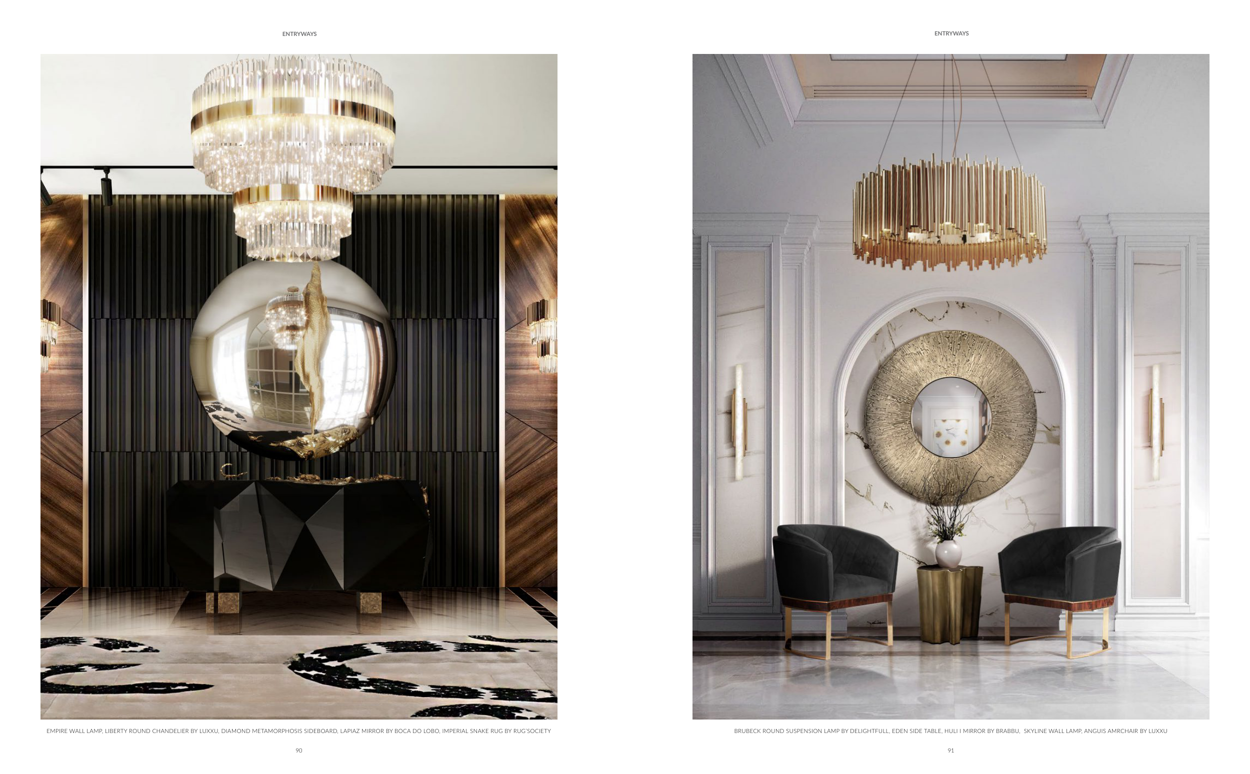 EMPIRE WALL LAMP, LIBERTY ROUND CHANDELIER BY LUXXU, DIAMOND METAMORPHOSIS SIDEBOARD, LAPIAZ MIRROR BY BOCA DO LOBO, IMPERIAL SNAKE RUG BY RUG’SOCIETY