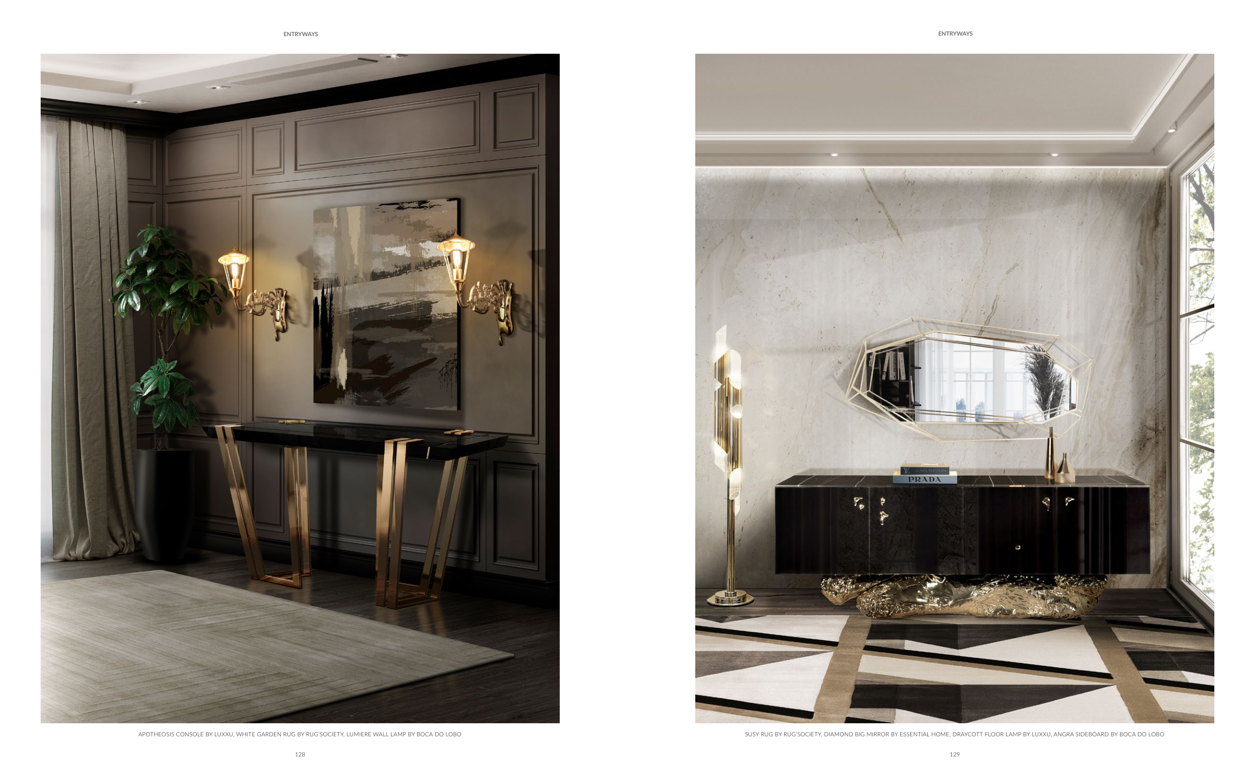 APOTHEOSIS CONSOLE BY LUXXU, WHITE GARDEN RUG BY RUG’SOCIETY, LUMIERE WALL LAMP BY BOCA DO LOBO