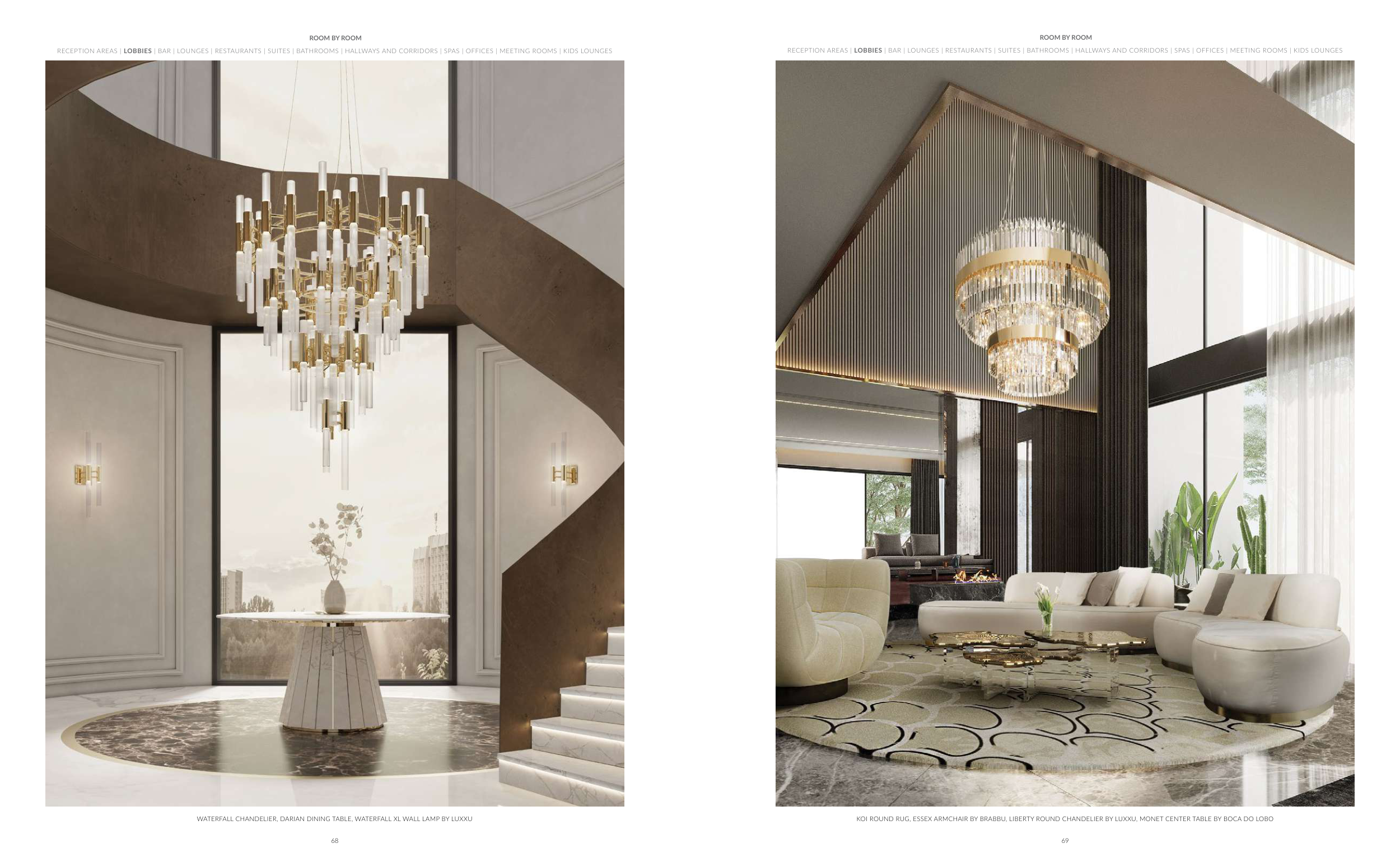 RECEPTION AREAS | LOBBIES | BAR | LOUNGES | RESTAURANTS | SUITES | BATHROOMS | HALLWAYS AND CORRIDORS | SPAS | OFFICES | MEETING ROOMS | KIDS LOUNGES