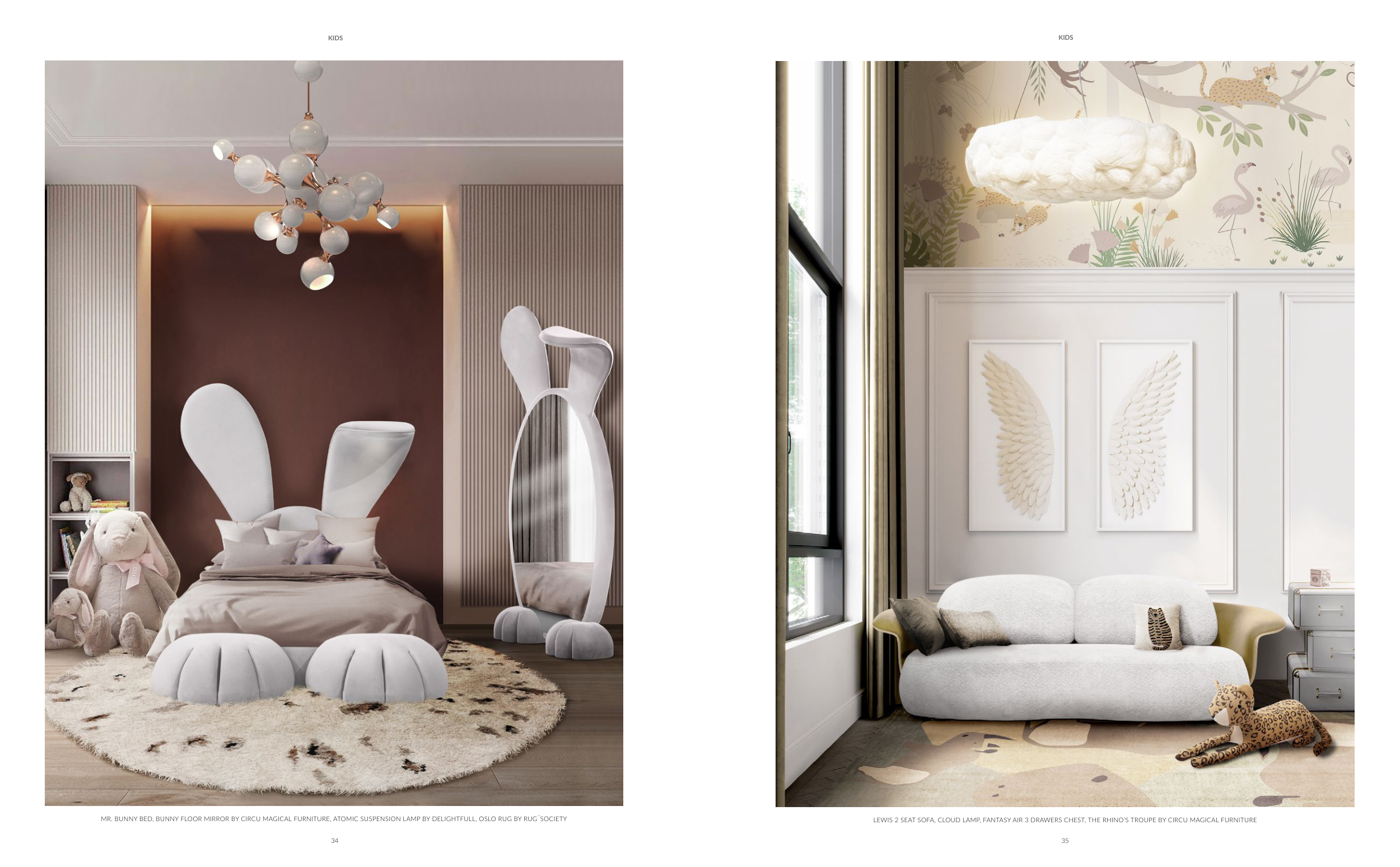 MR. BUNNY BED, BUNNY FLOOR MIRROR BY CIRCU MAGICAL FURNITURE, ATOMIC SUSPENSION LAMP BY DELIGHTFULL, OSLO RUG BY RUG´SOCIETY