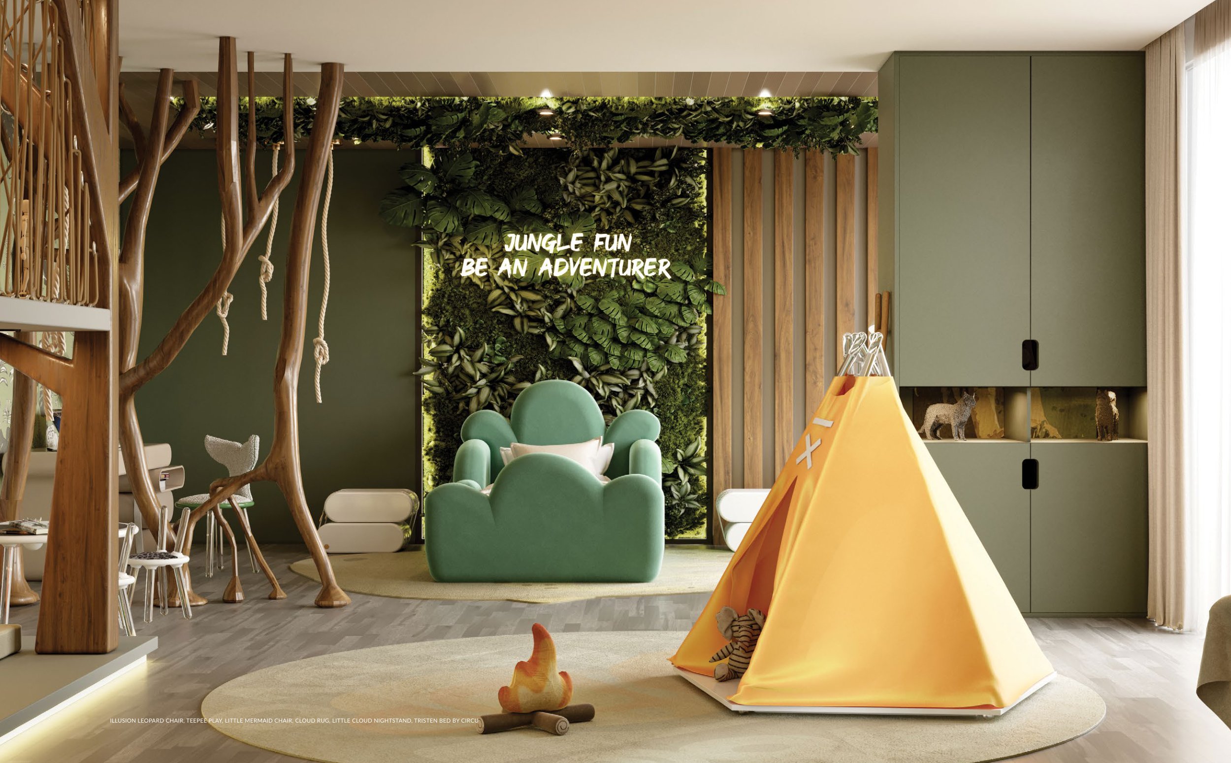 ILLUSION LEOPARD CHAIR, TEEPEE PLAY, LITTLE MERMAID CHAIR, CLOUD RUG, LITTLE CLOUD NIGHTSTAND, TRISTEN BED BY CIRCU