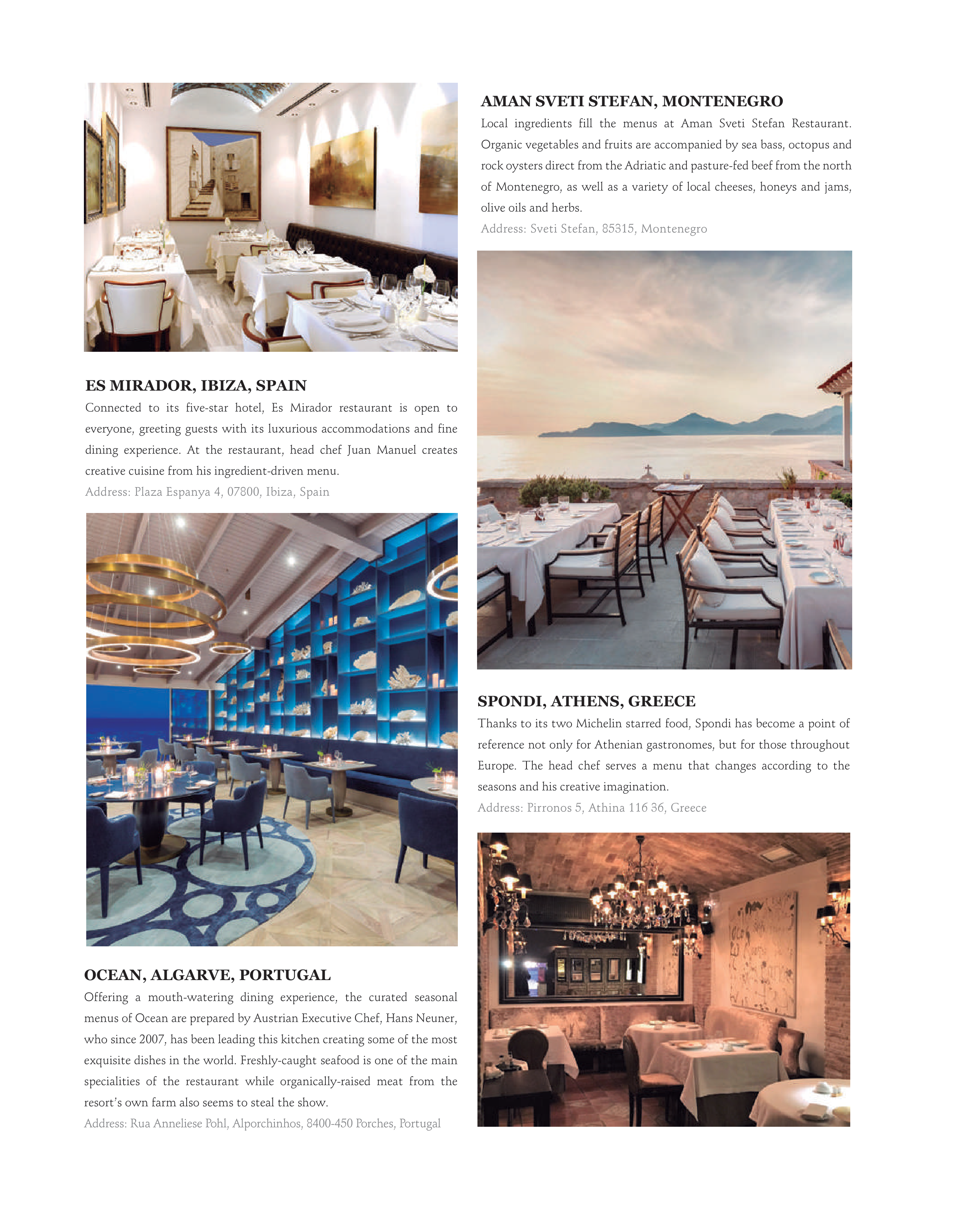 Local ingredients fill the menus at Aman Sveti Stefan Restaurant.
