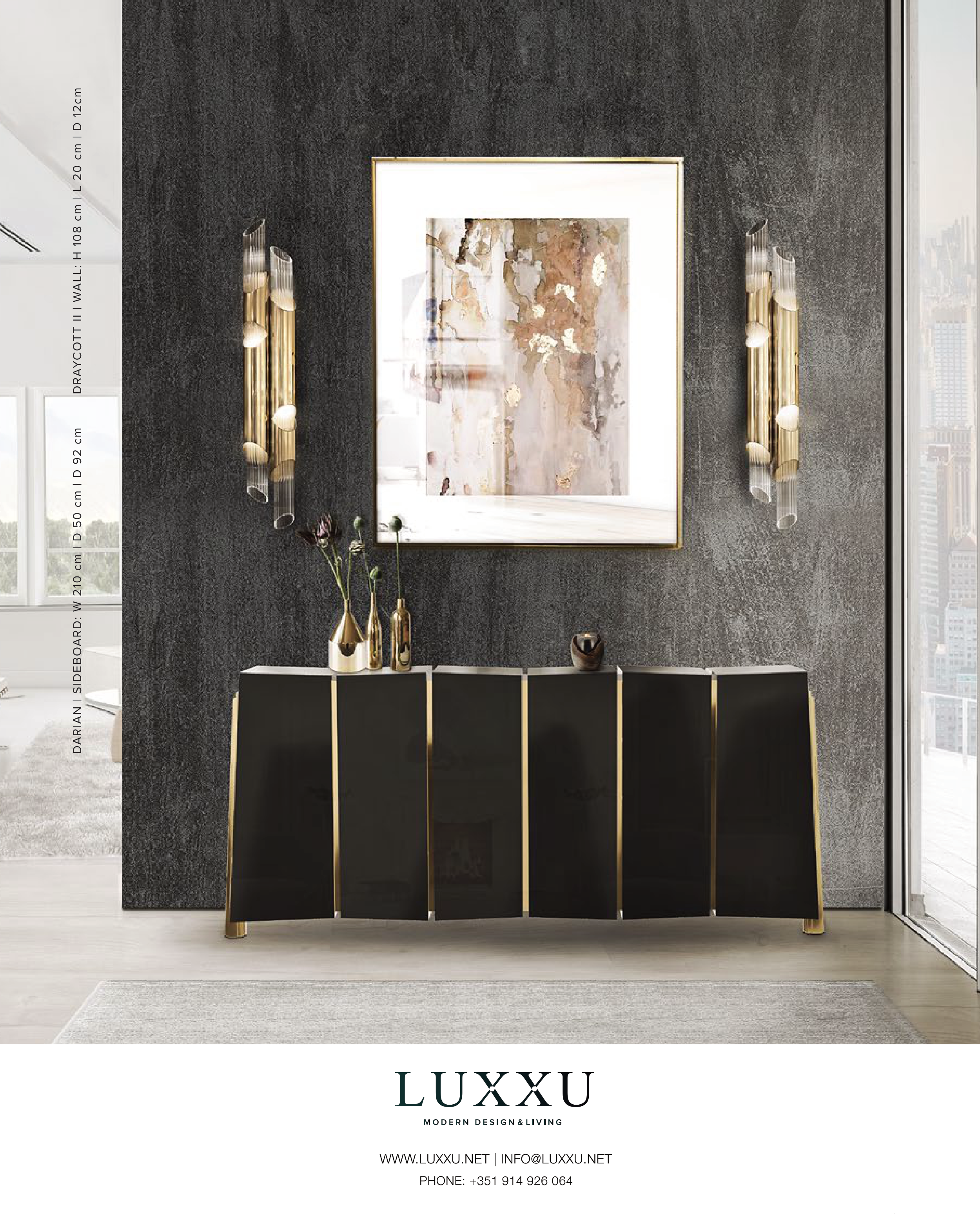 DARIAN | SIDEBOARD: W 210 cm | D 50 cm | D 92 cm DRAYCOTT II | WALL: H 108 cm | L 20 cm | D 12cm