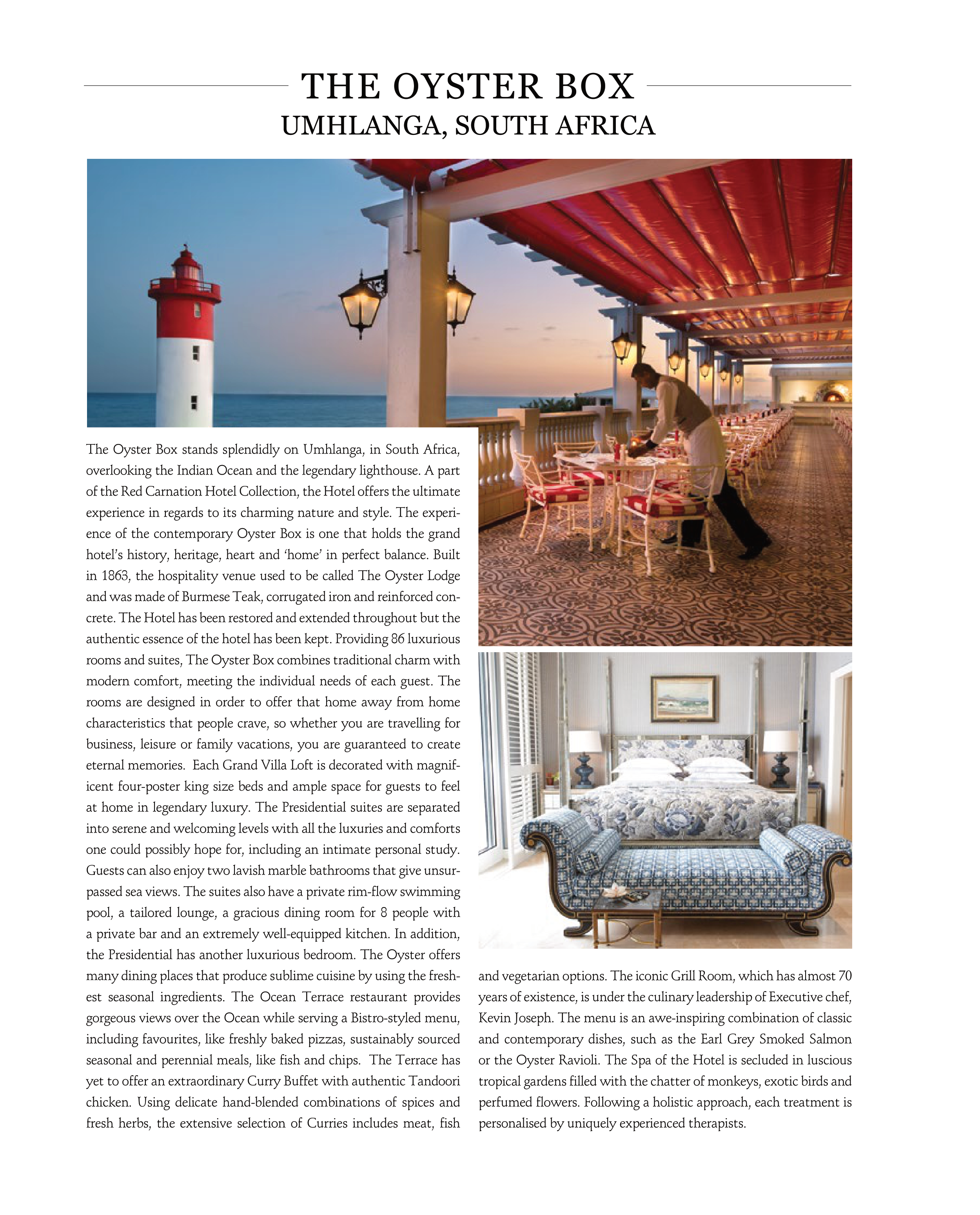 ence of the contemporary Oyster Box is one that holds the grand