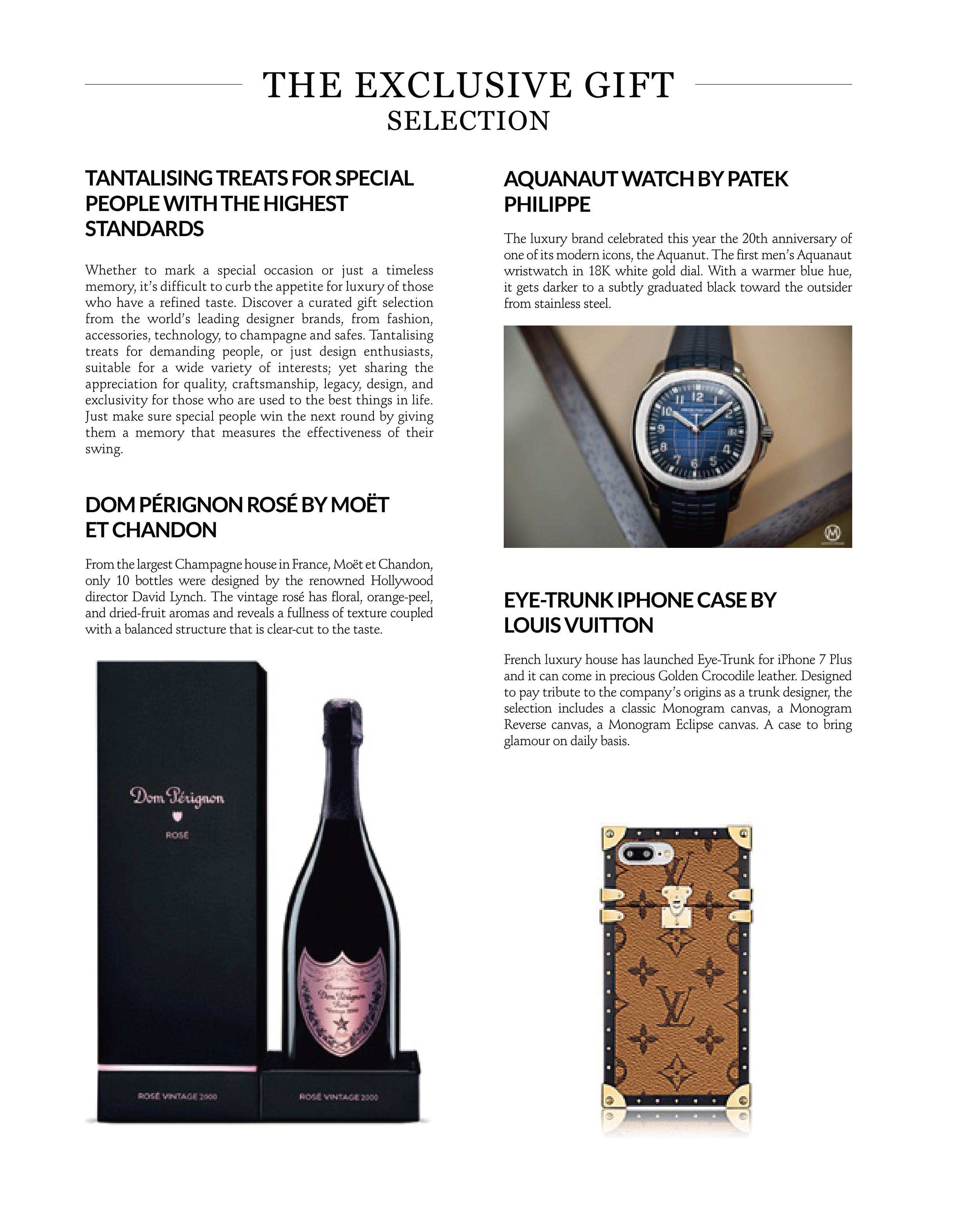 accessories, technology, to champagne and safes. Tantalising