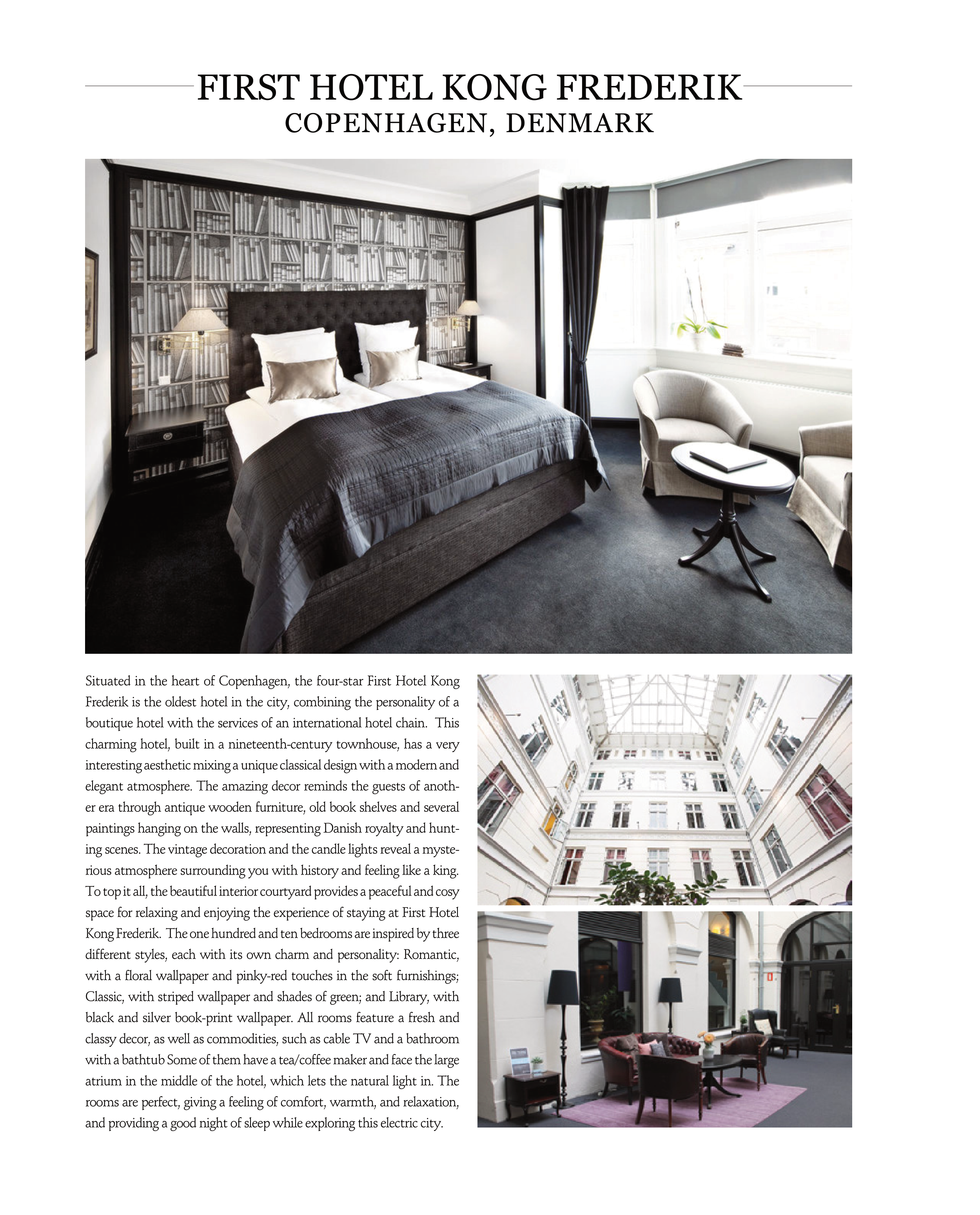 Kong Frederik. The one hundred and ten bedrooms are inspired by three