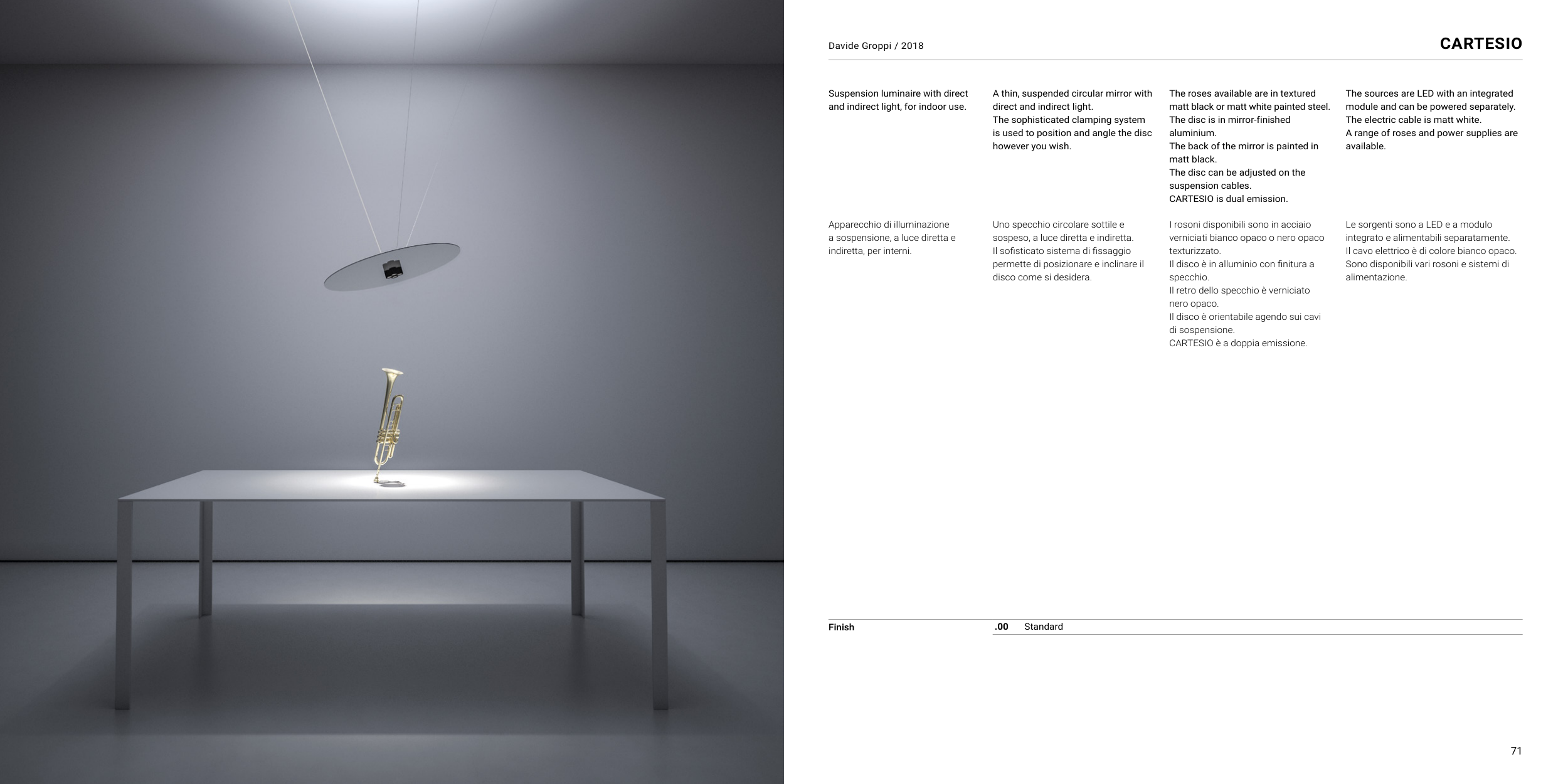 sospeso, a luce diretta e indiretta.