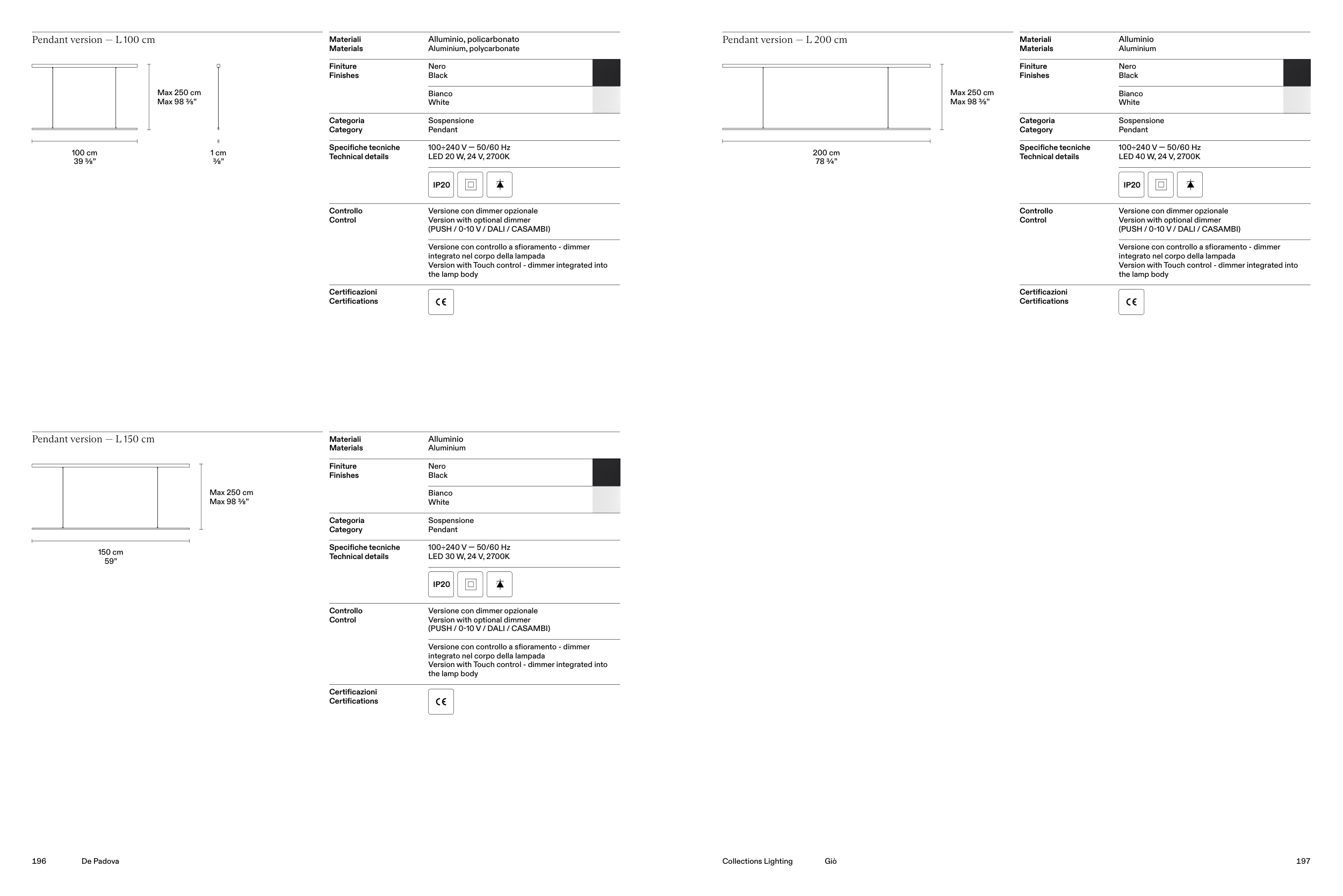 Pendant version — L 200 cm