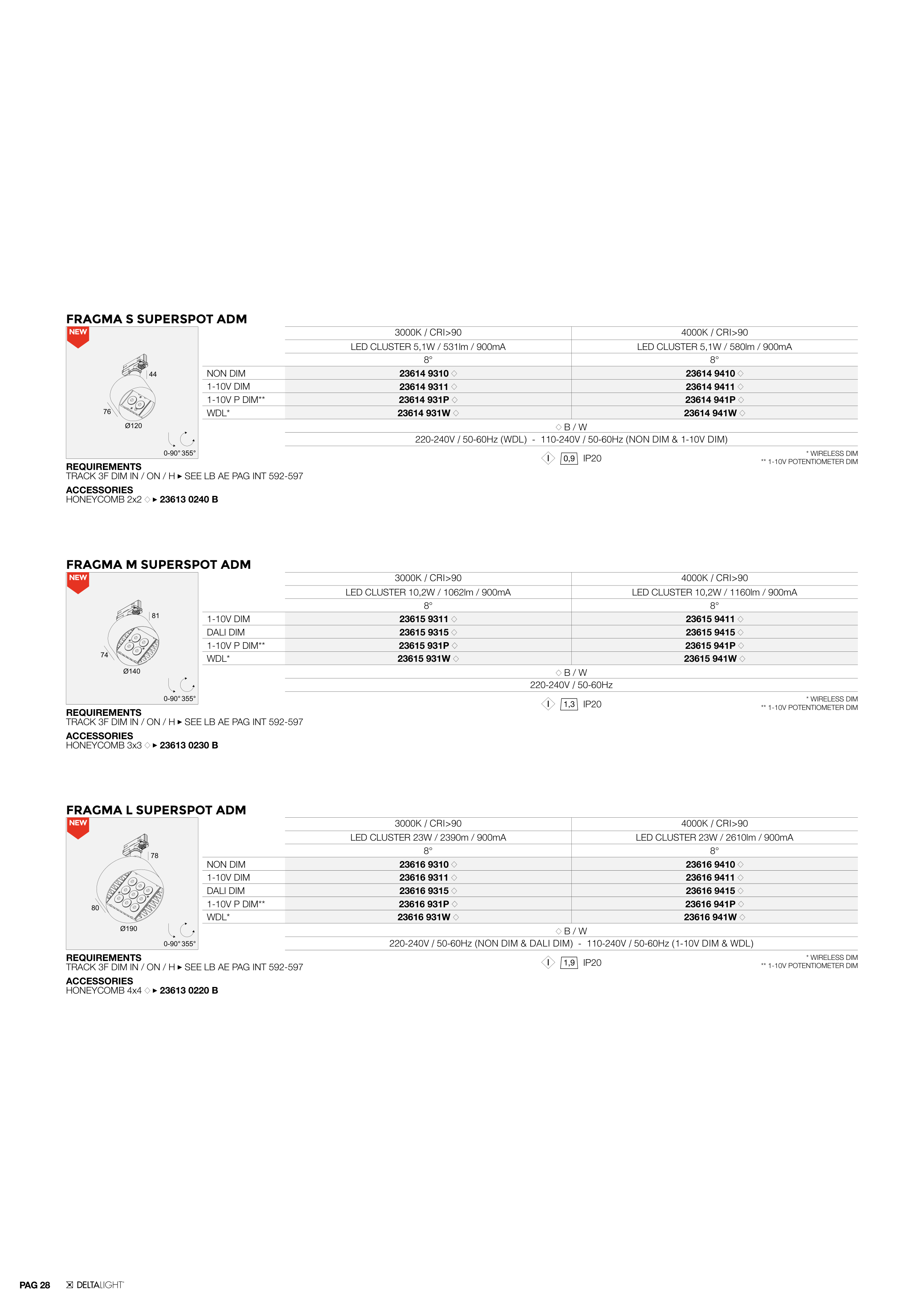 220-240V / 50-60Hz (WDL) - 110-240V / 50-60Hz (NON DIM & 1-10V DIM)