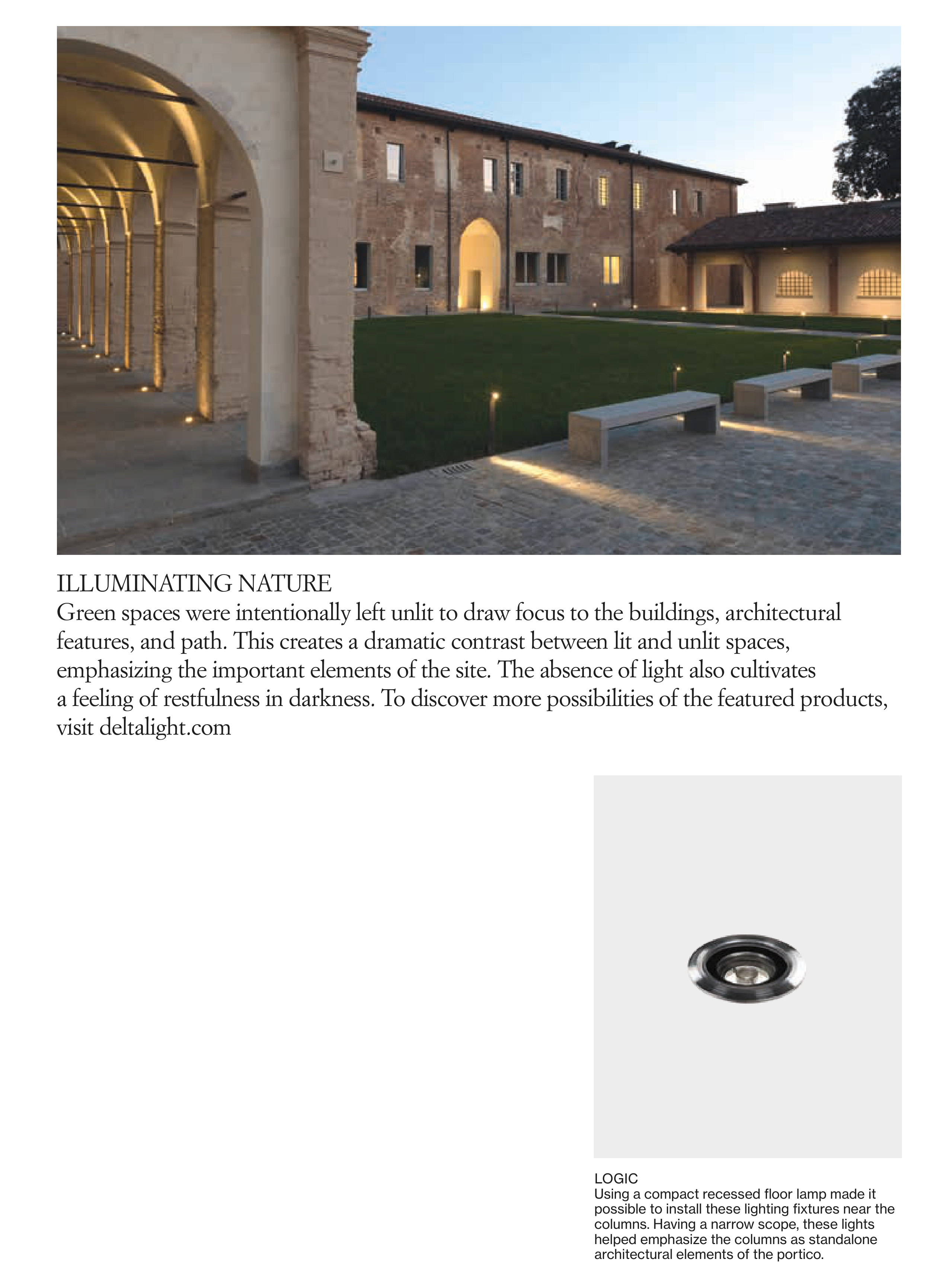 Green spaces were intentionally left unlit to draw focus to the buildings, architectural