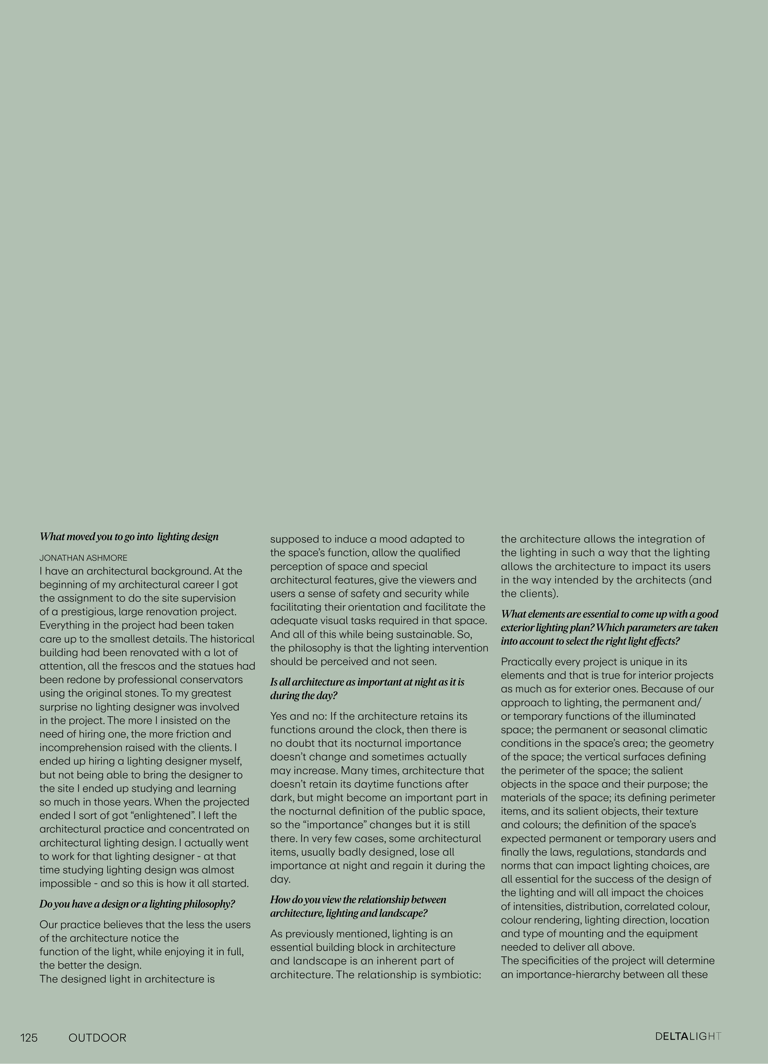 architecture, lighting and landscape?