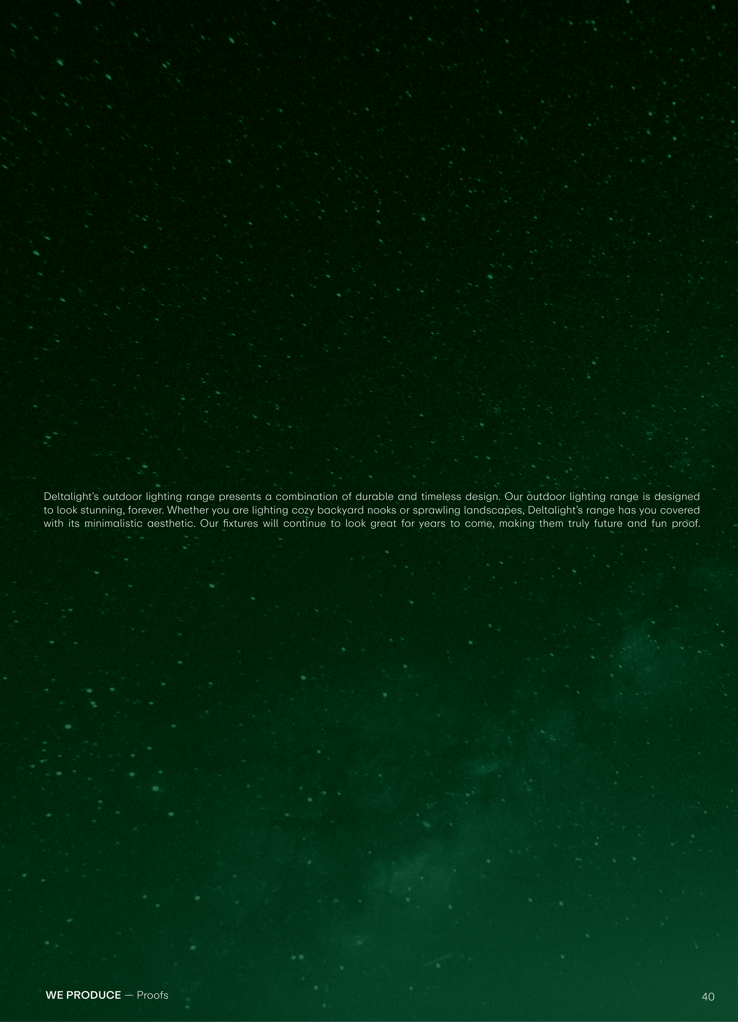 to look stunning, forever. Whether you are lighting cozy backyard nooks or sprawling landscapes, Deltalight’s range has you covered