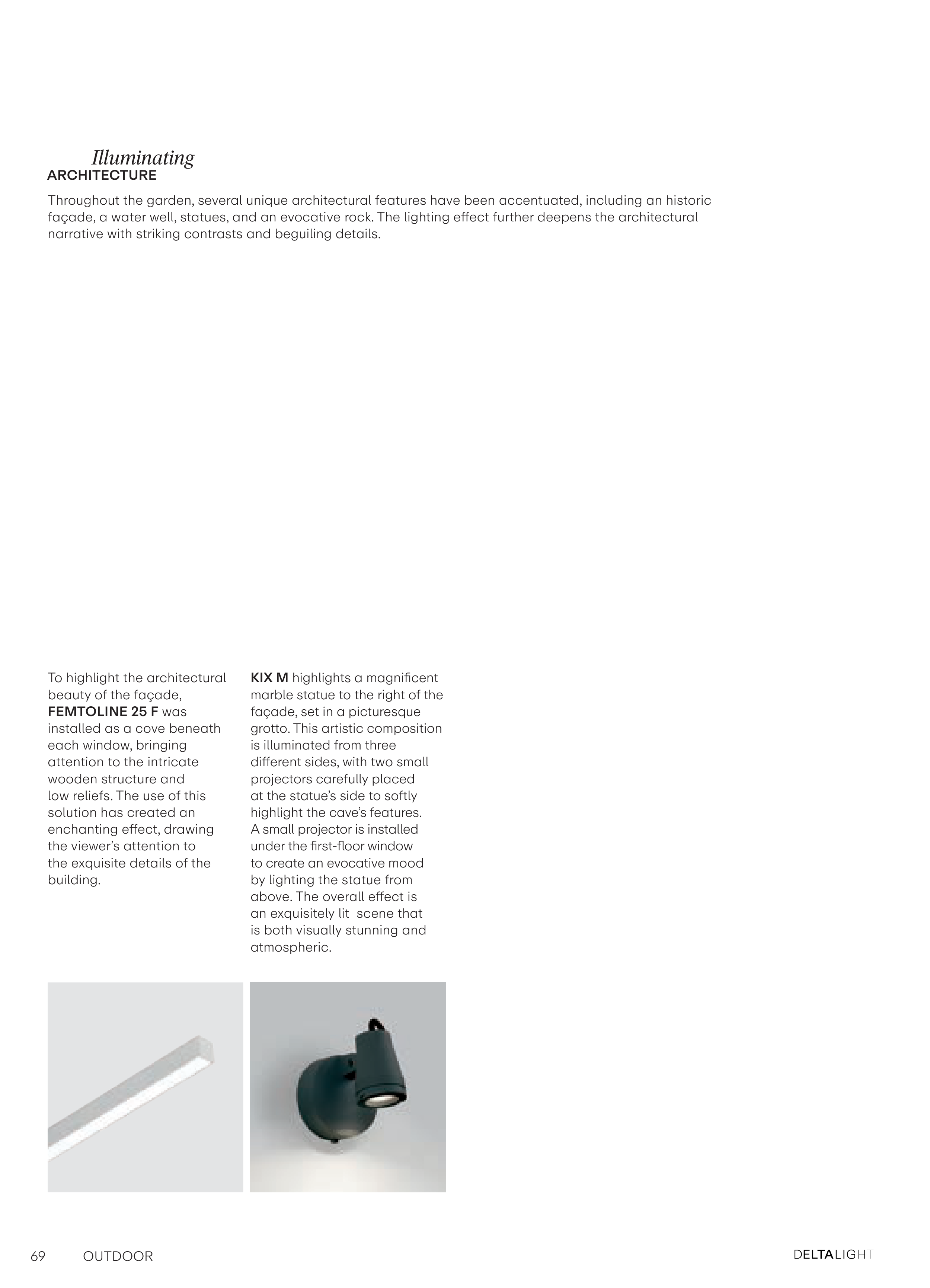 façade, a water well, statues, and an evocative rock. The lighting effect further deepens the architectural