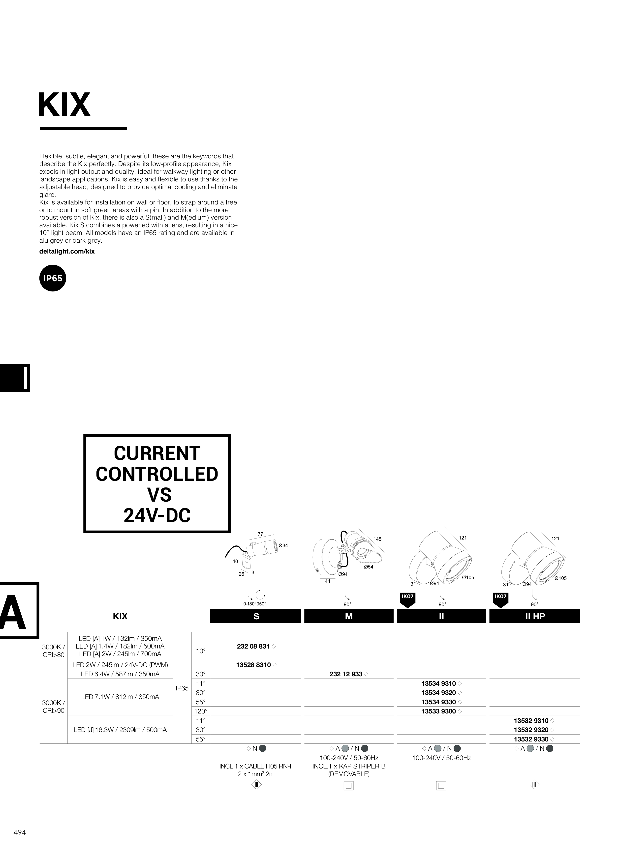 10° light beam. All models have an IP65 rating and are available in