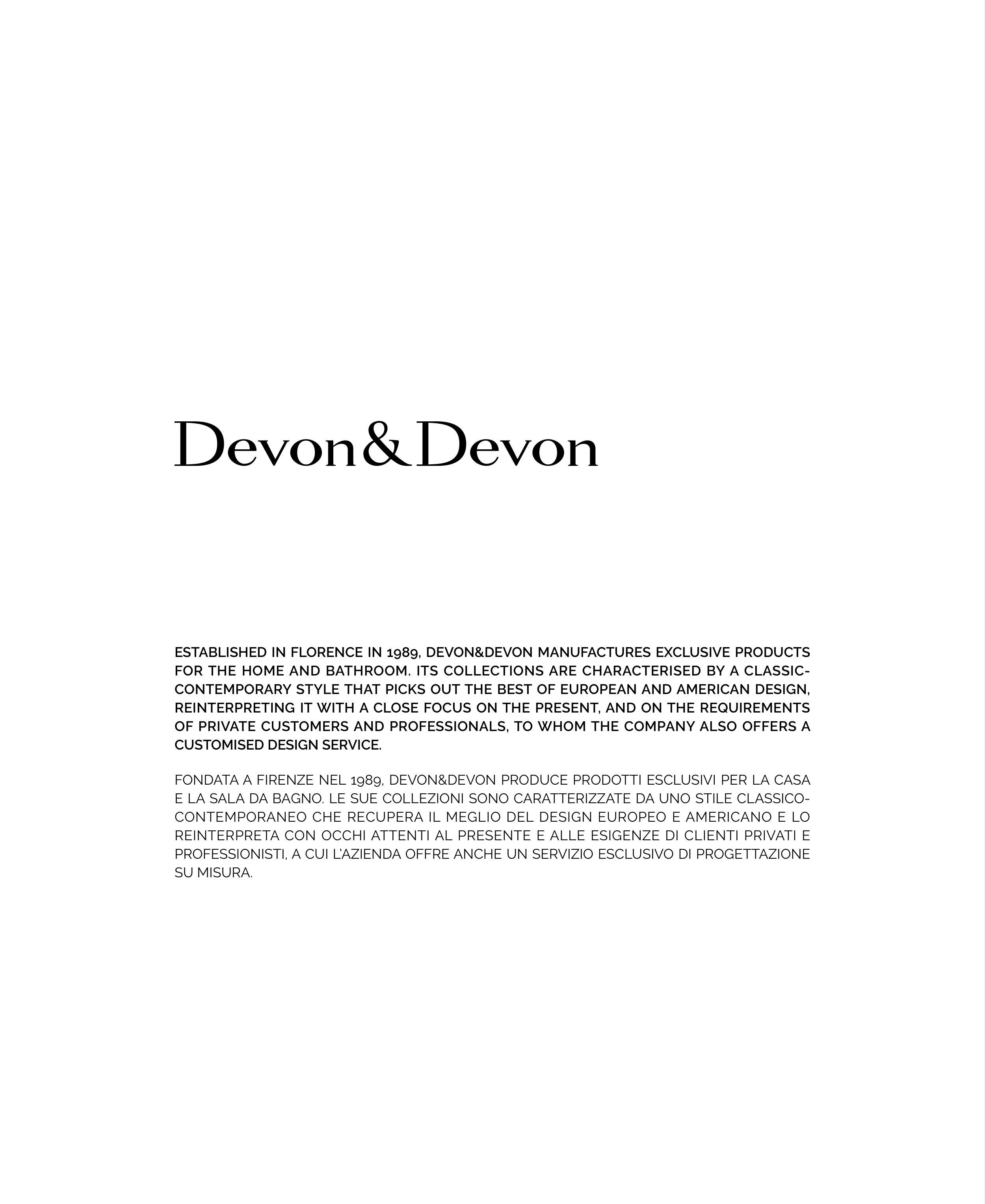 ESTABLISHED IN FLORENCE IN 1989, DEVON&DEVON MANUFACTURES EXCLUSIVE PRODUCTS