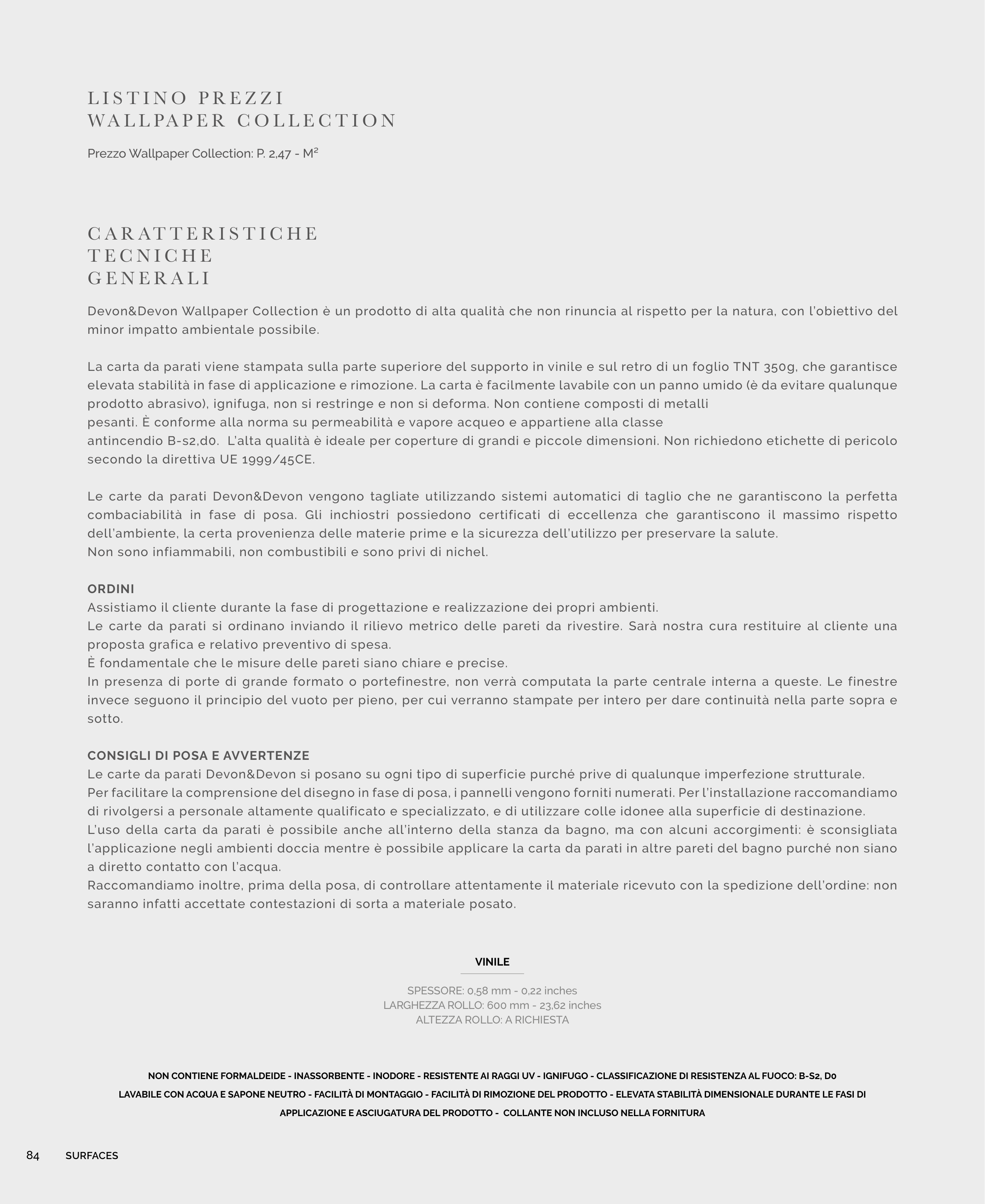 NON CONTIENE FORMALDEIDE - INASSORBENTE - INODORE - RESISTENTE AI RAGGI UV - IGNIFUGO - CLASSIFICAZIONE DI RESISTENZA AL FUOCO: B-S2, D0