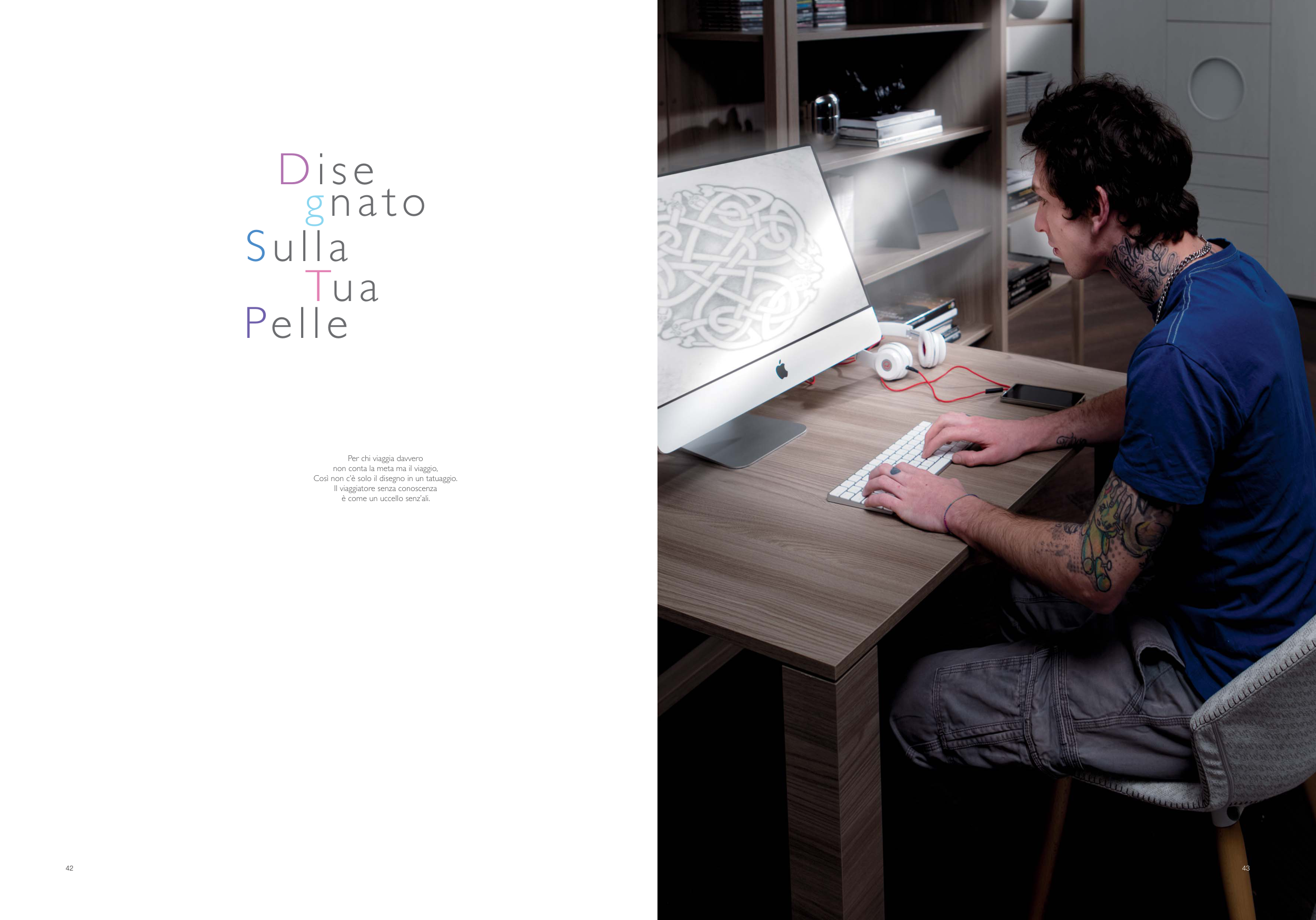 43 42 Dise gnato Sulla Tua Pelle Per chi viaggia davvero non conta la meta ma il viaggio, Così non c’è solo il disegno in un tatuaggio. Il viaggiatore senza conoscenza è come un uccello senz’ali. DIELLE ANTEPRIMA 2017_Layout 1 11/04/17 17.02 Pagina 42