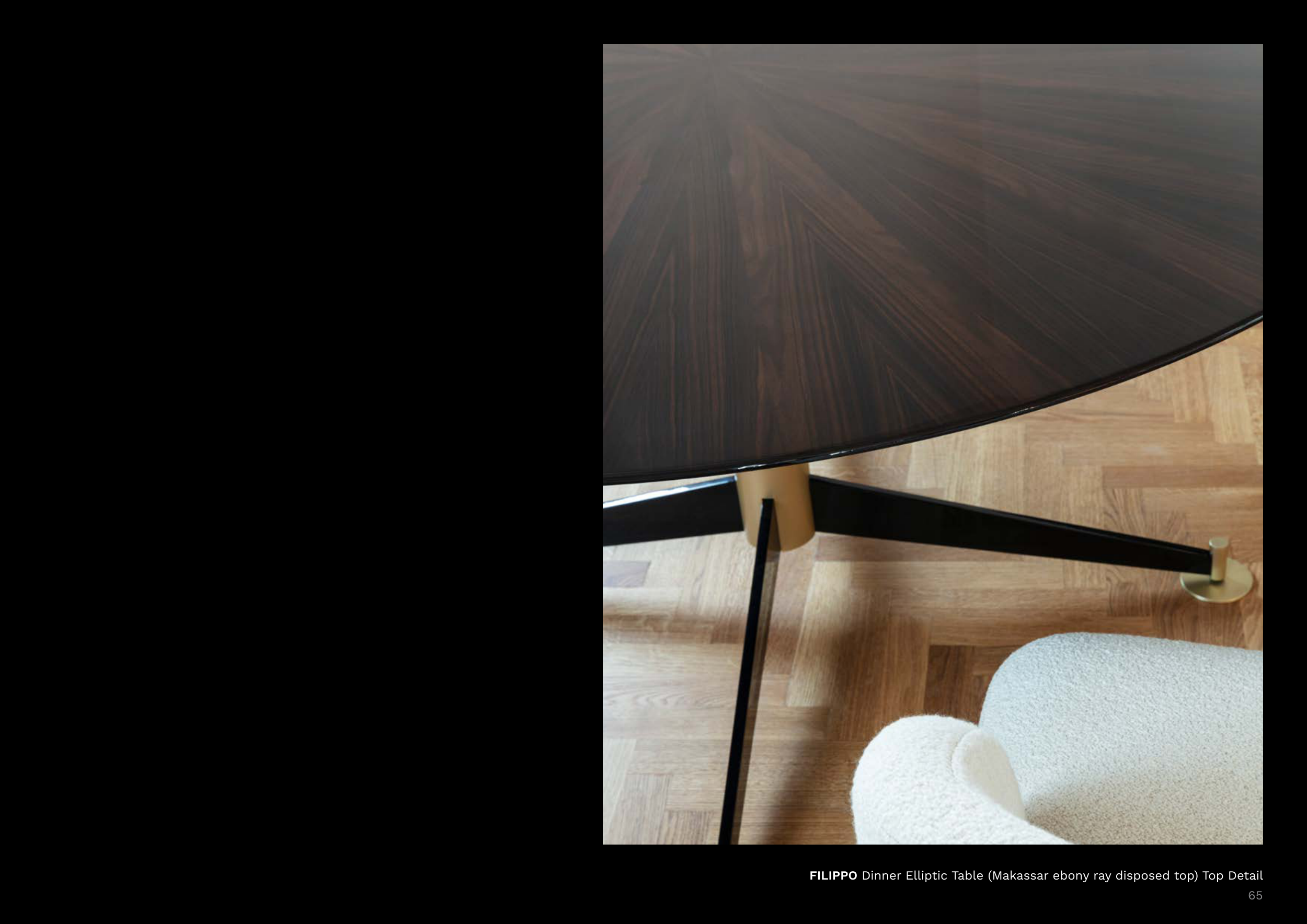 FILIPPO Dinner Elliptic Table (Makassar ebony ray disposed top) Top Detail