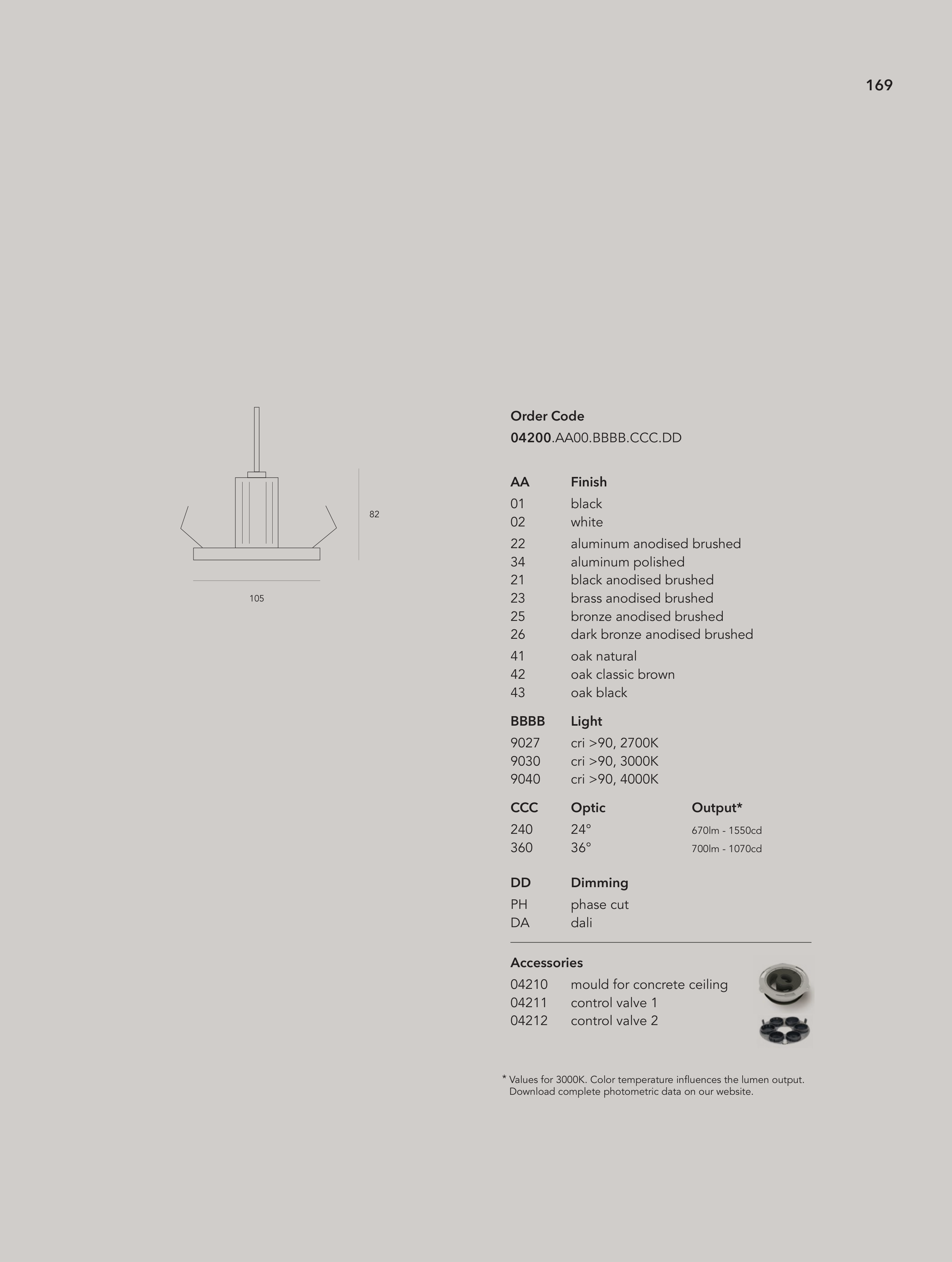 Values for 3000K. Color temperature influences the lumen output.
