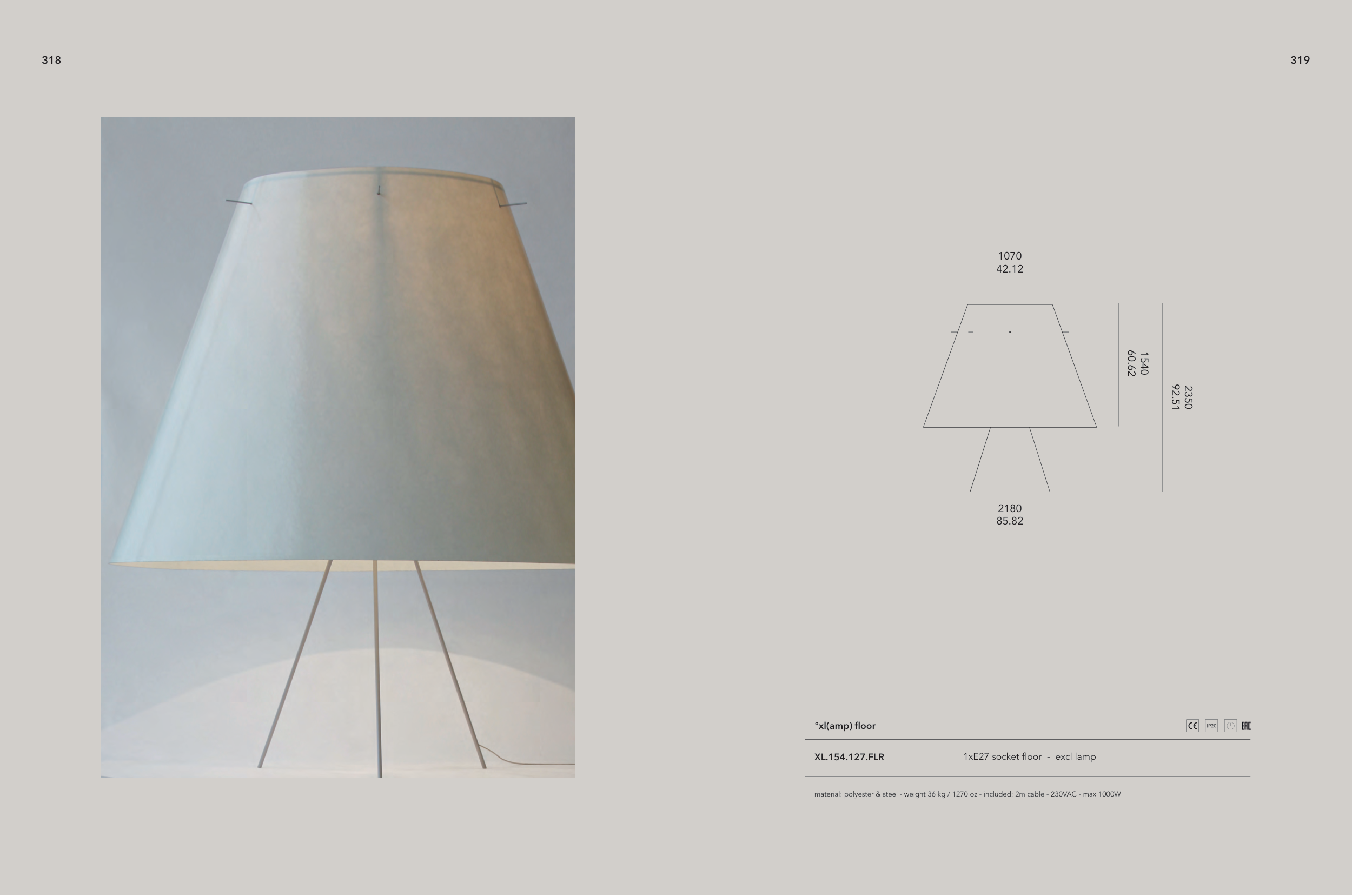 material: polyester & steel - weight 36 kg / 1270 oz - included: 2m cable - 230VAC - max 1000W