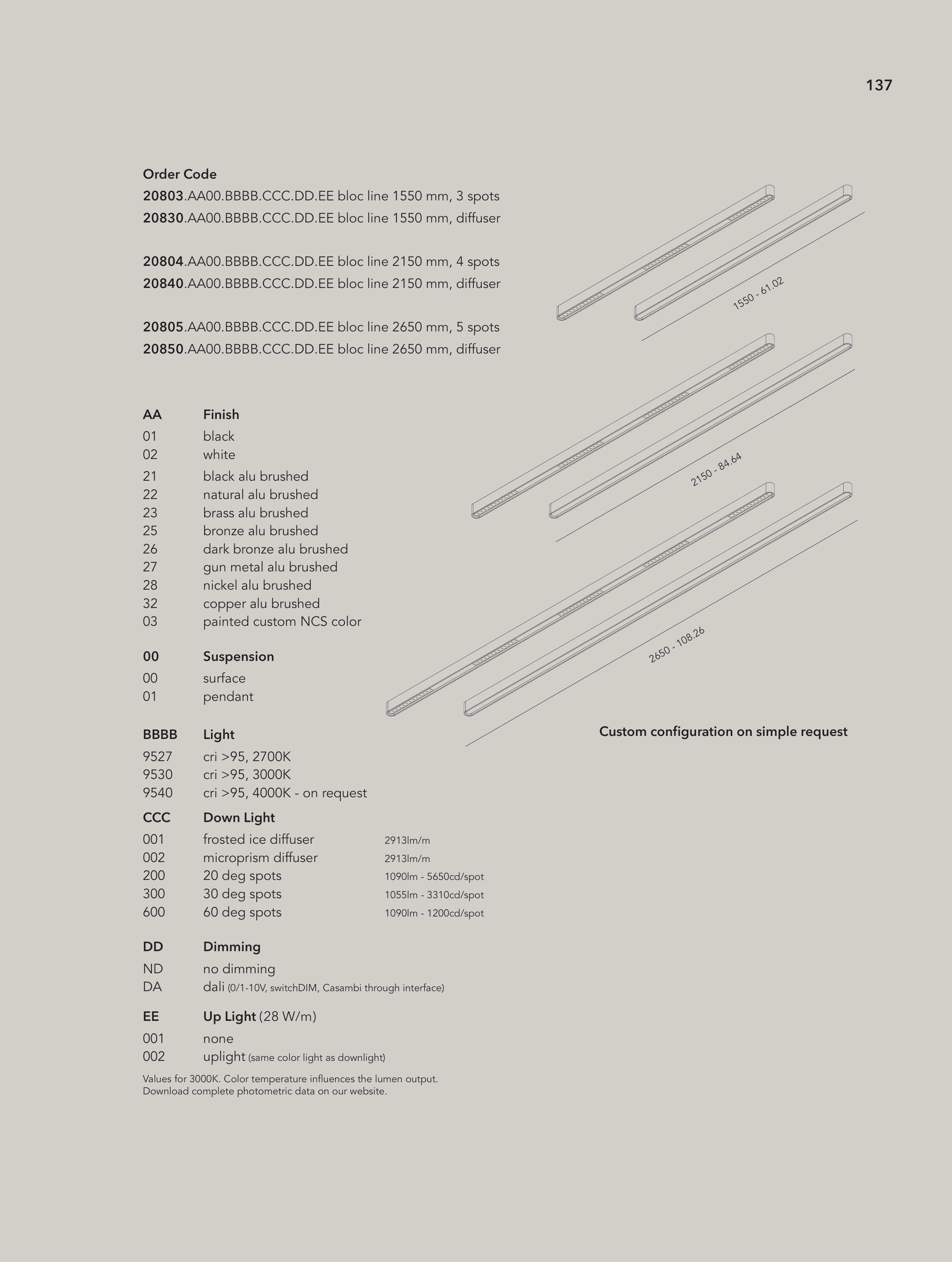 20803.AA00.BBBB.CCC.DD.EE bloc line 1550 mm, 3 spots