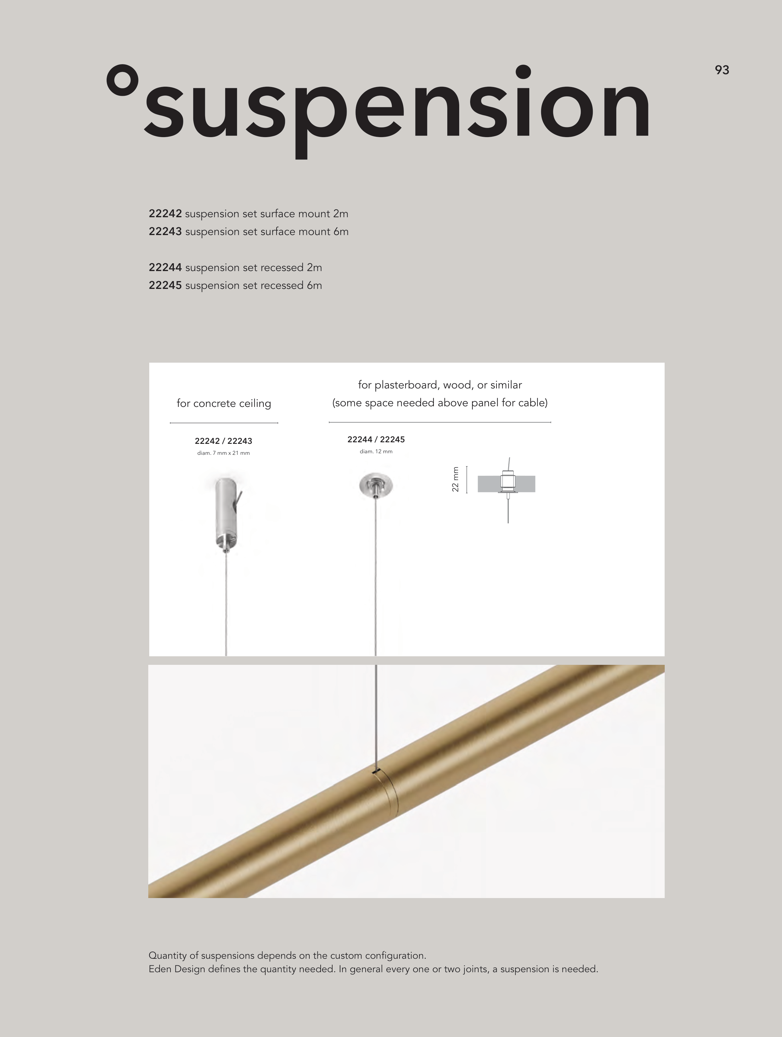 Eden Design defines the quantity needed. In general every one or two joints, a suspension is needed.