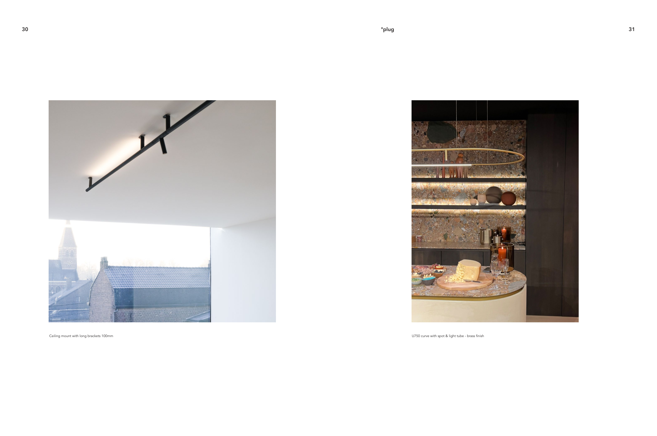 U750 curve with spot & light tube - brass finish