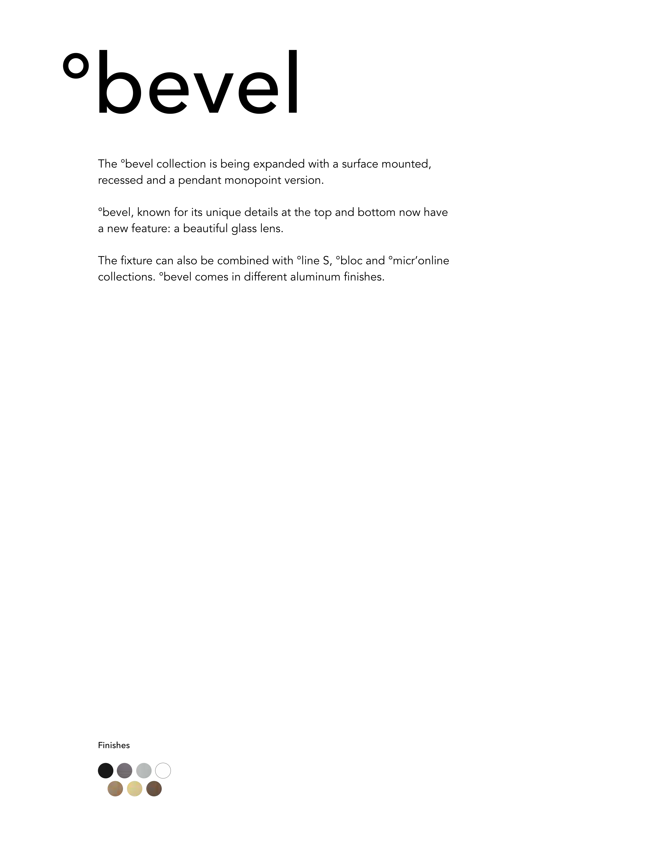 collections. °bevel comes in different aluminum finishes.