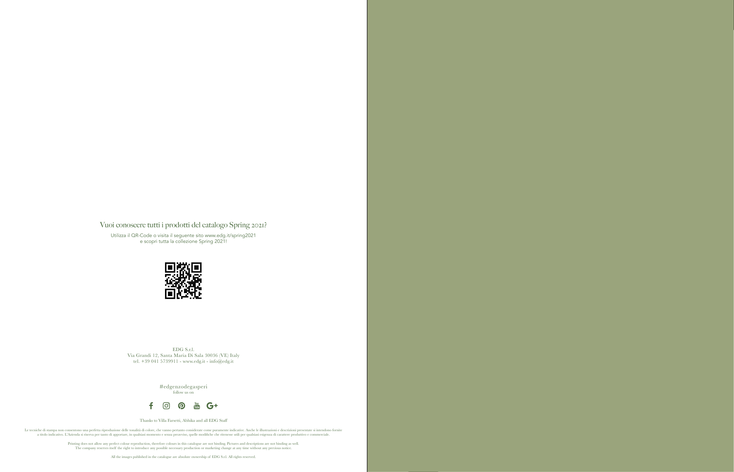 All the images published in the catalogue are absolute ownership of EDG S.r.l. All rights reserved.