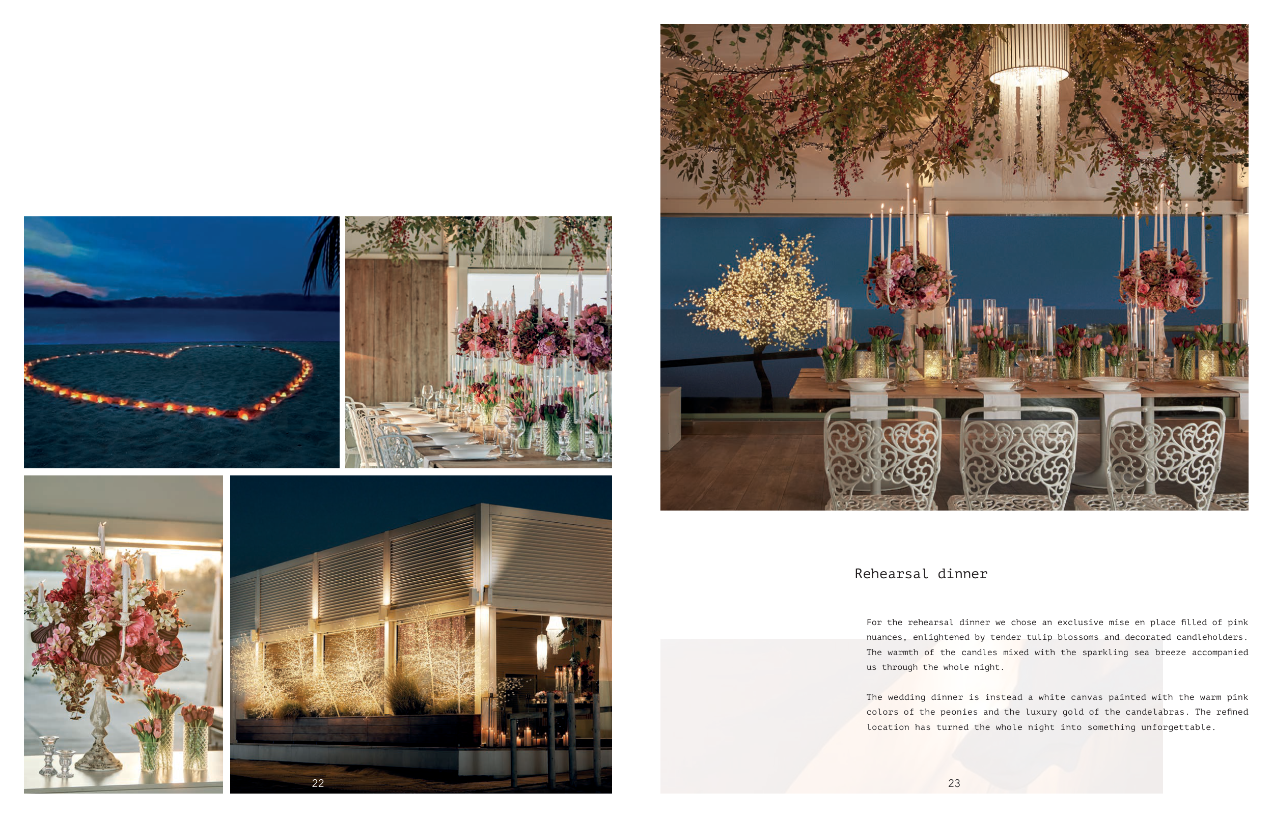 For the rehearsal dinner we chose an exclusive mise en place filled of pink