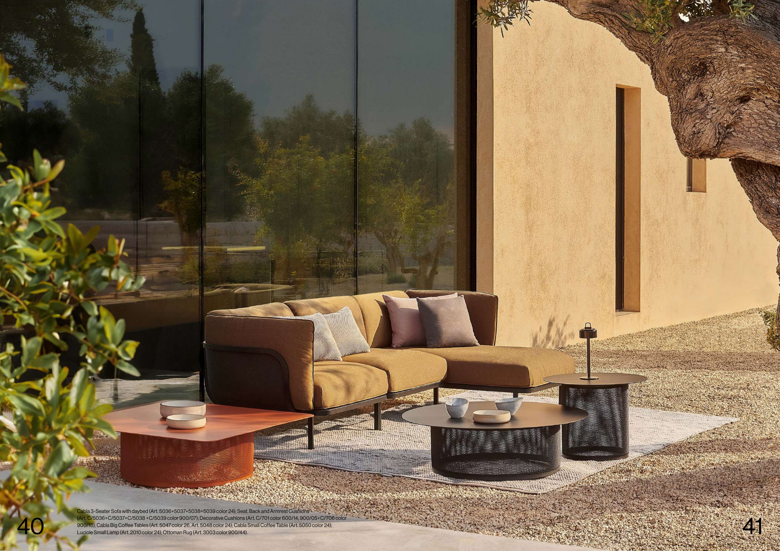 900/18); Cabla Big Coffee Tables (Art. 5047 color 26, Art. 5048 color 24); Cabla Small Coffee Table (Art. 5050 color 24);