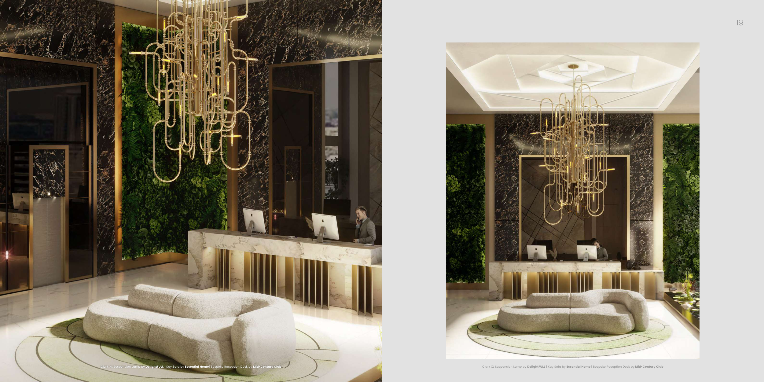 Clark XL Suspension Lamp by DelightFULL | Kay Sofa by Essential Home | Bespoke Reception Desk by Mid-Century Club