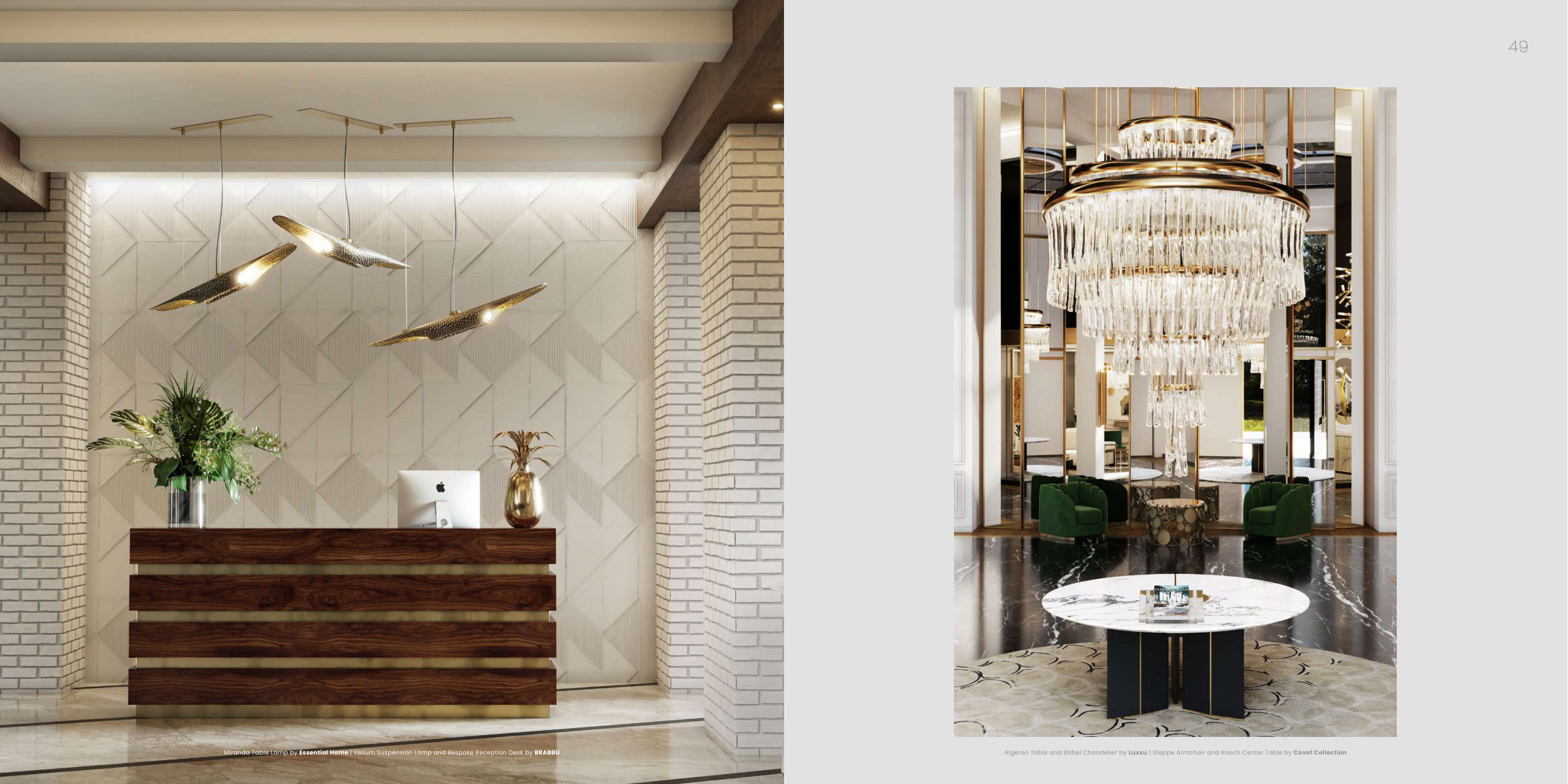 Miranda Table Lamp by Essential Home | Vellum Suspension Lamp and Bespoke Reception Desk by BRABBU