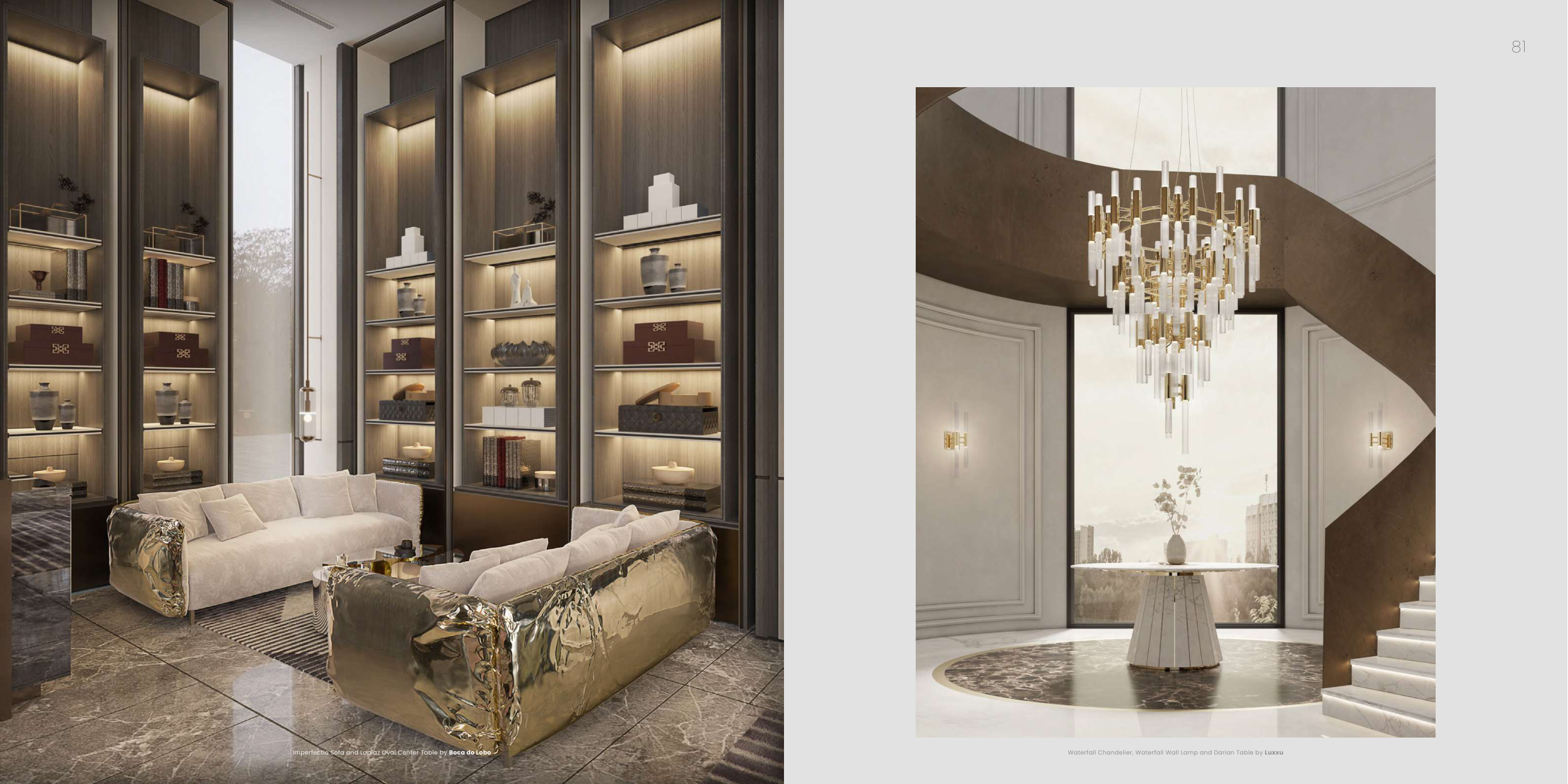 Waterfall Chandelier, Waterfall Wall Lamp and Darian Table by Luxxu