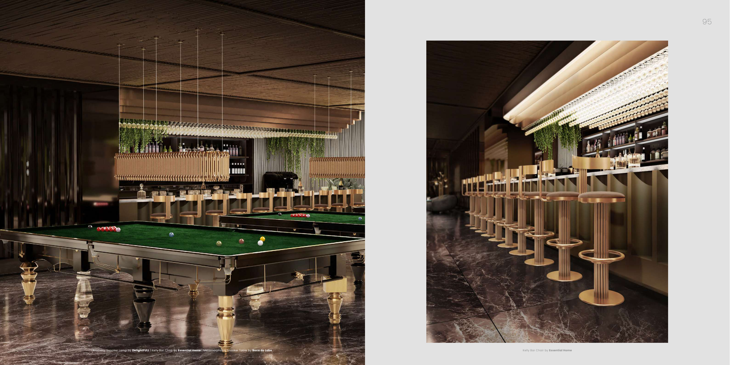 Matheny Snooker Lamp by DelightFULL | Kelly Bar Chair by Essential Home | Metamorphosis Snooker Table by Boca do Lobo