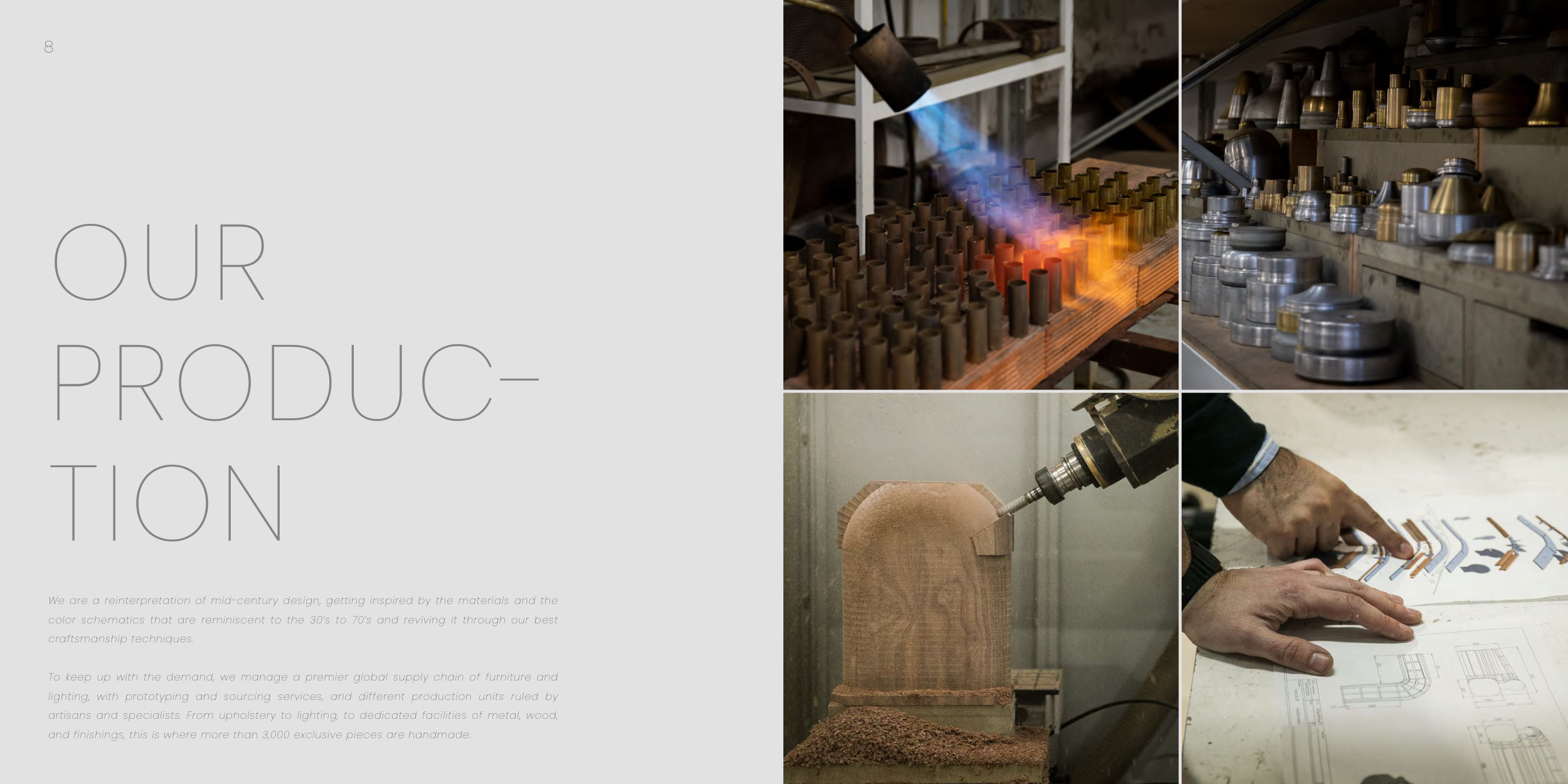 artisans and specialists. From upholstery to lighting, to dedicated facilities of metal, wood,