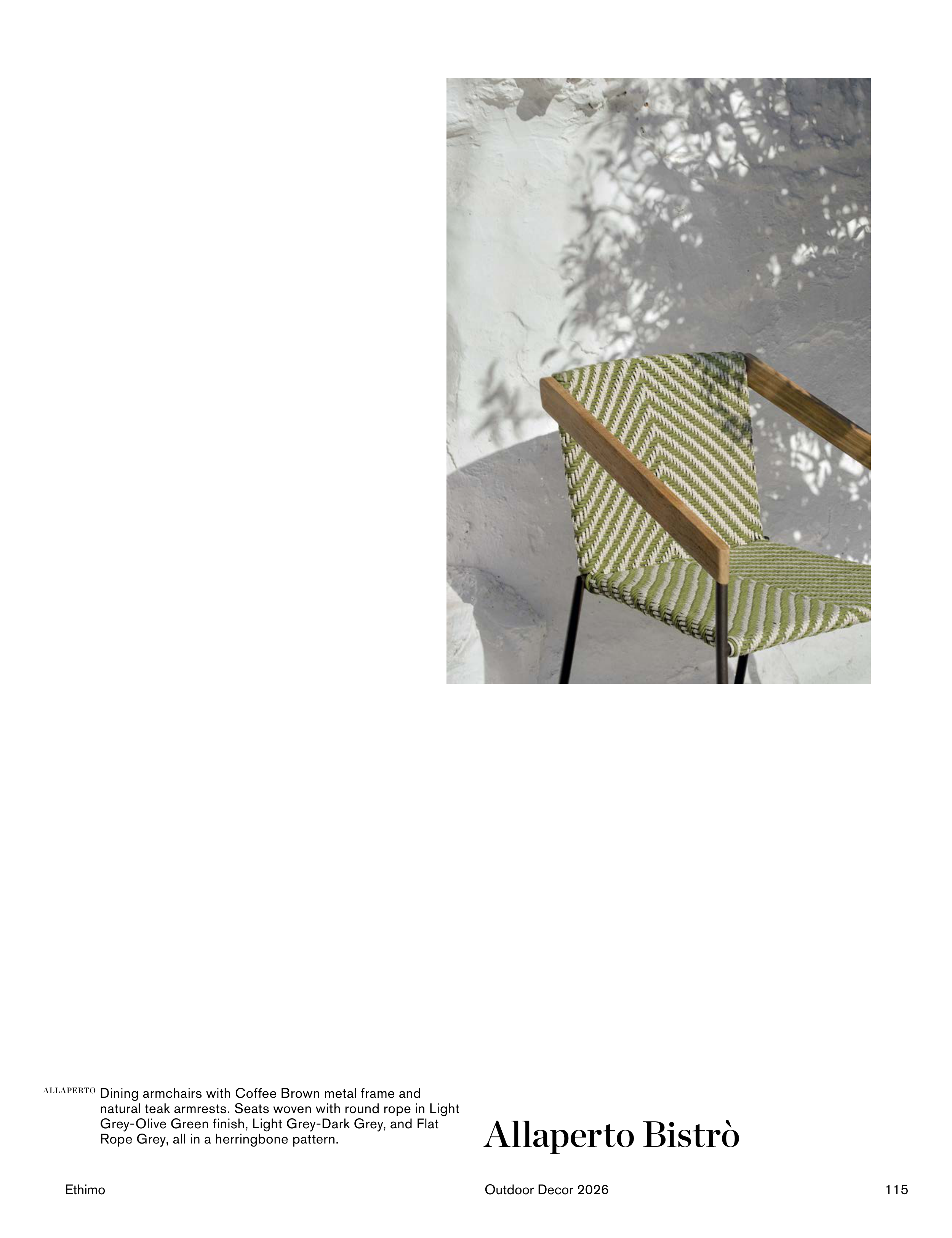 natural teak armrests. Seats woven with round rope in Light