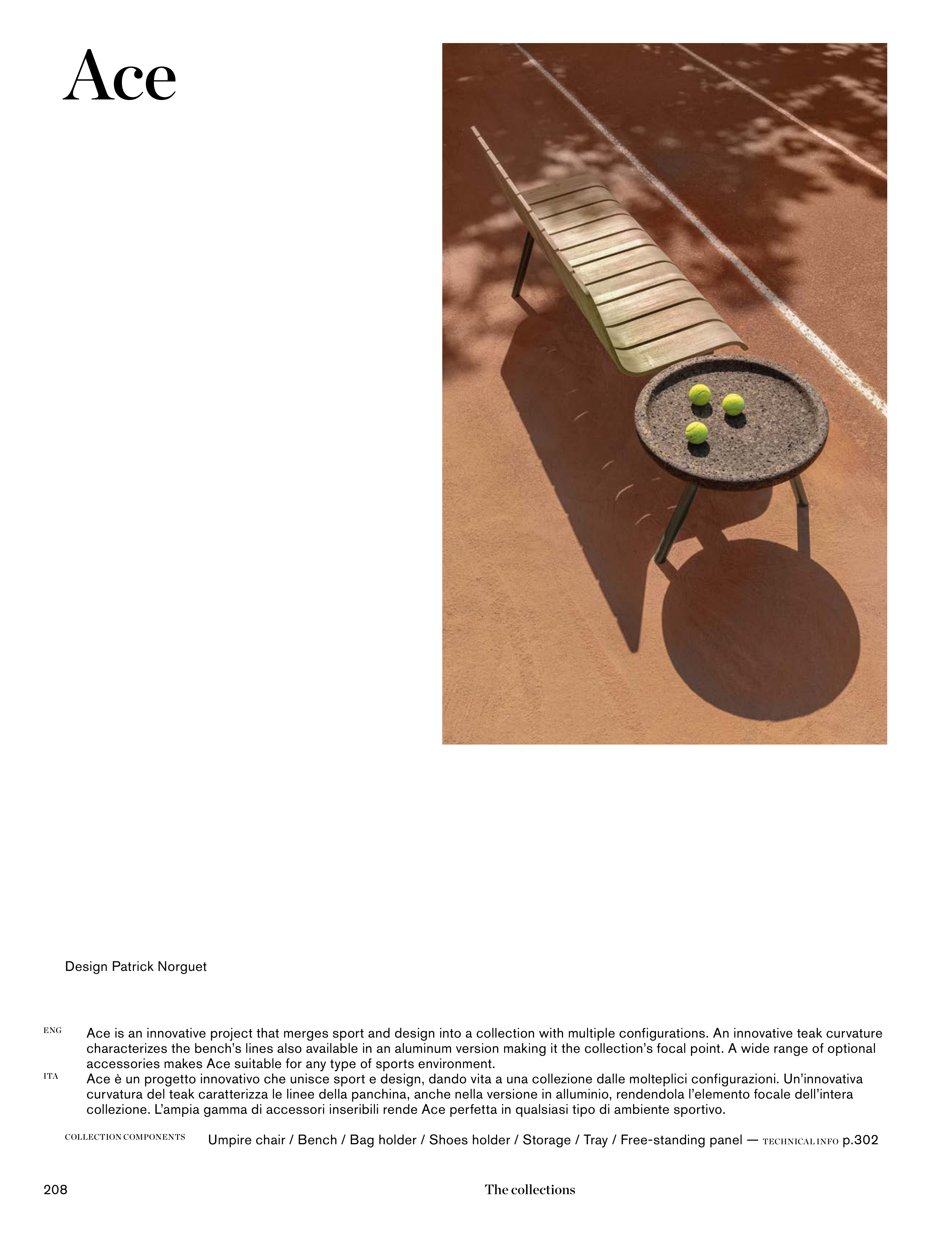 collezione. L’ampia gamma di accessori inseribili rende Ace perfetta in qualsiasi tipo di ambiente sportivo.