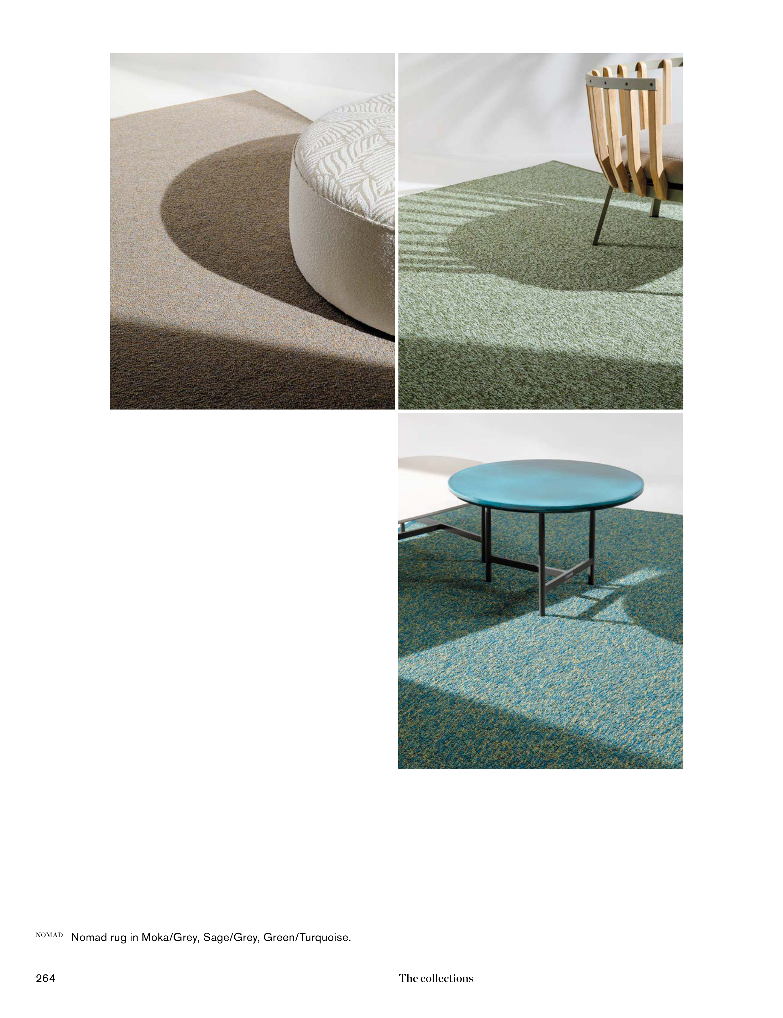 NOMAD Nomad rug in Moka/Grey, Sage/Grey, Green/Turquoise.