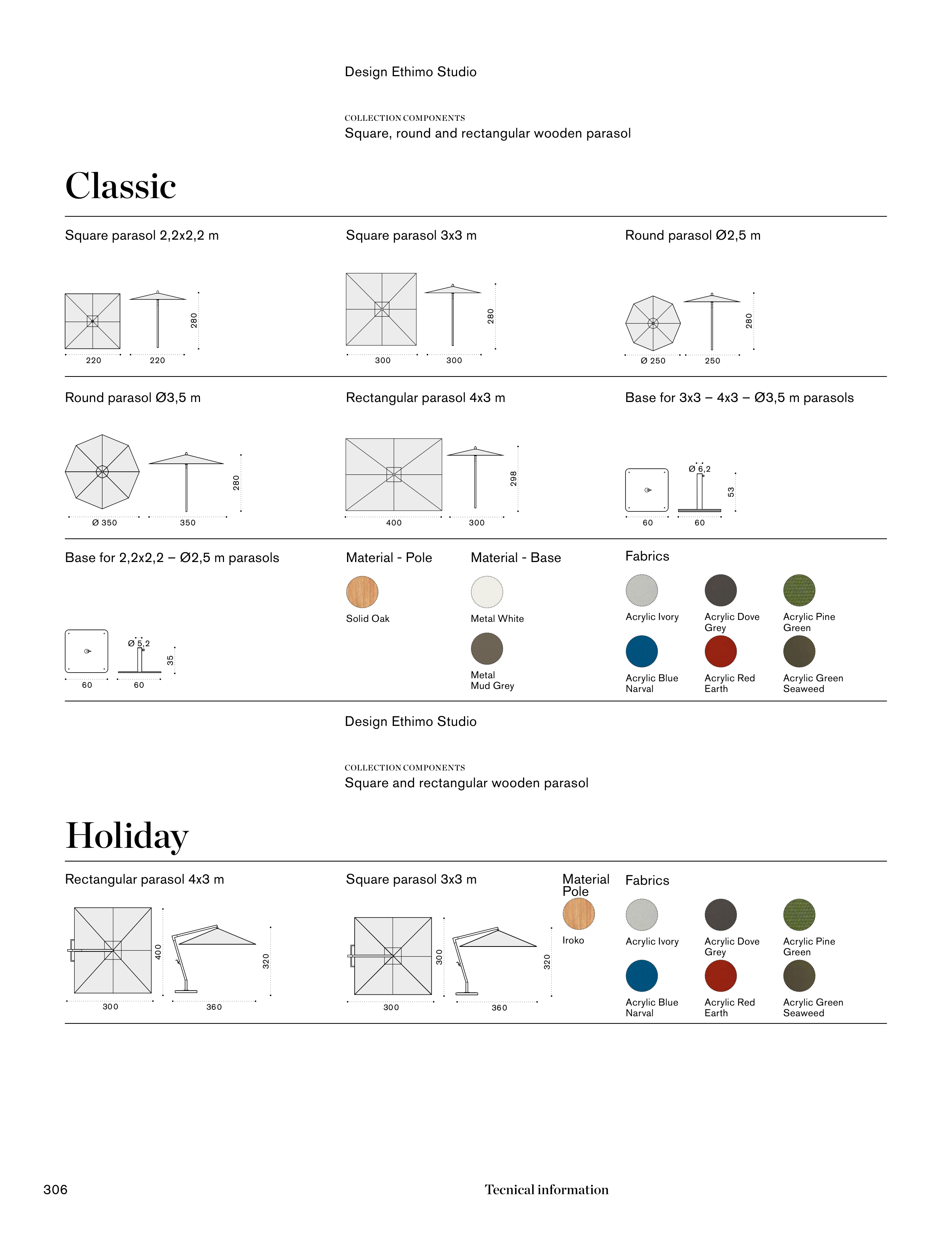 Square, round and rectangular wooden parasol
