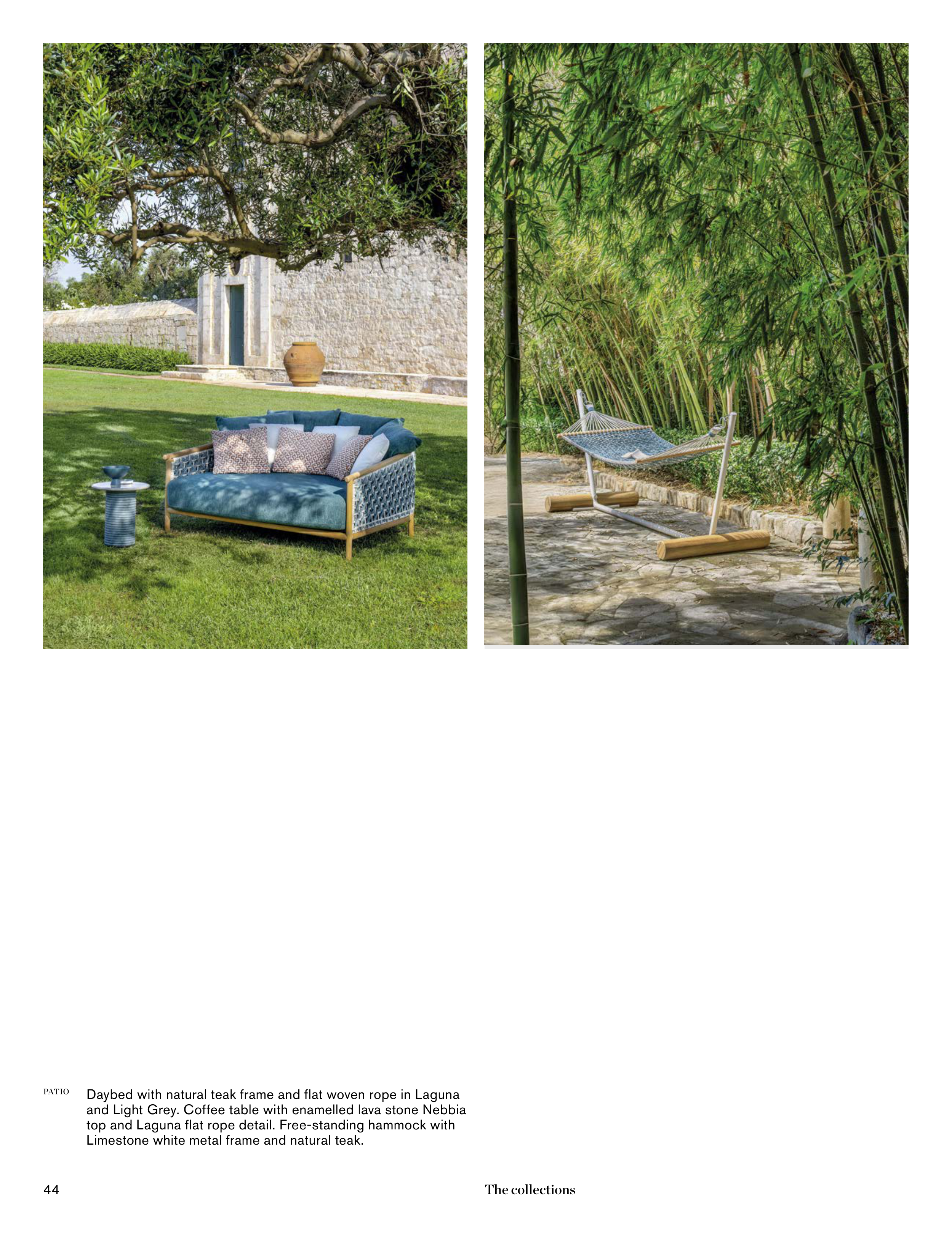 Limestone white metal frame and natural teak.