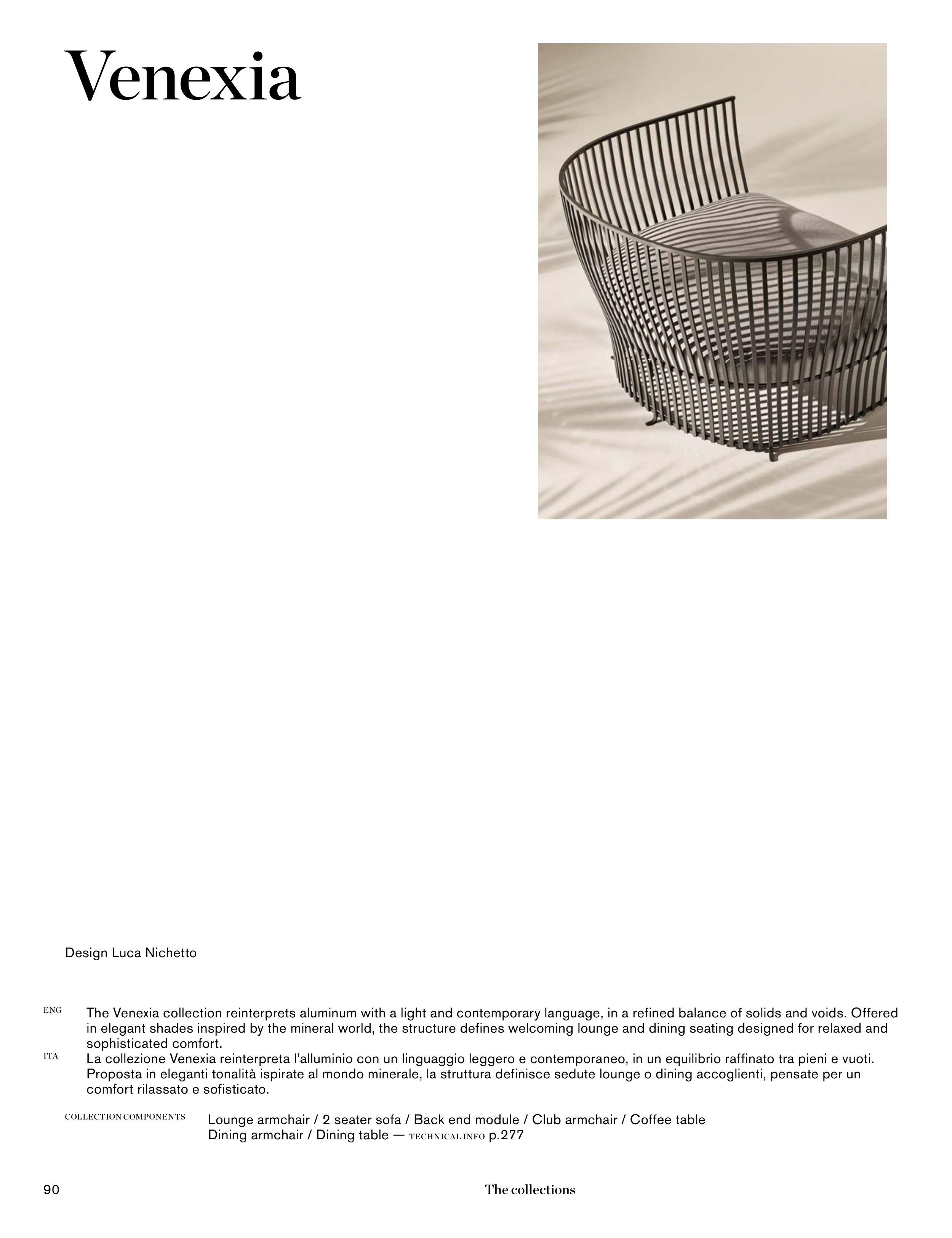 The Venexia collection reinterprets aluminum with a light and contemporary language, in a refined balance of solids and voids. Offered