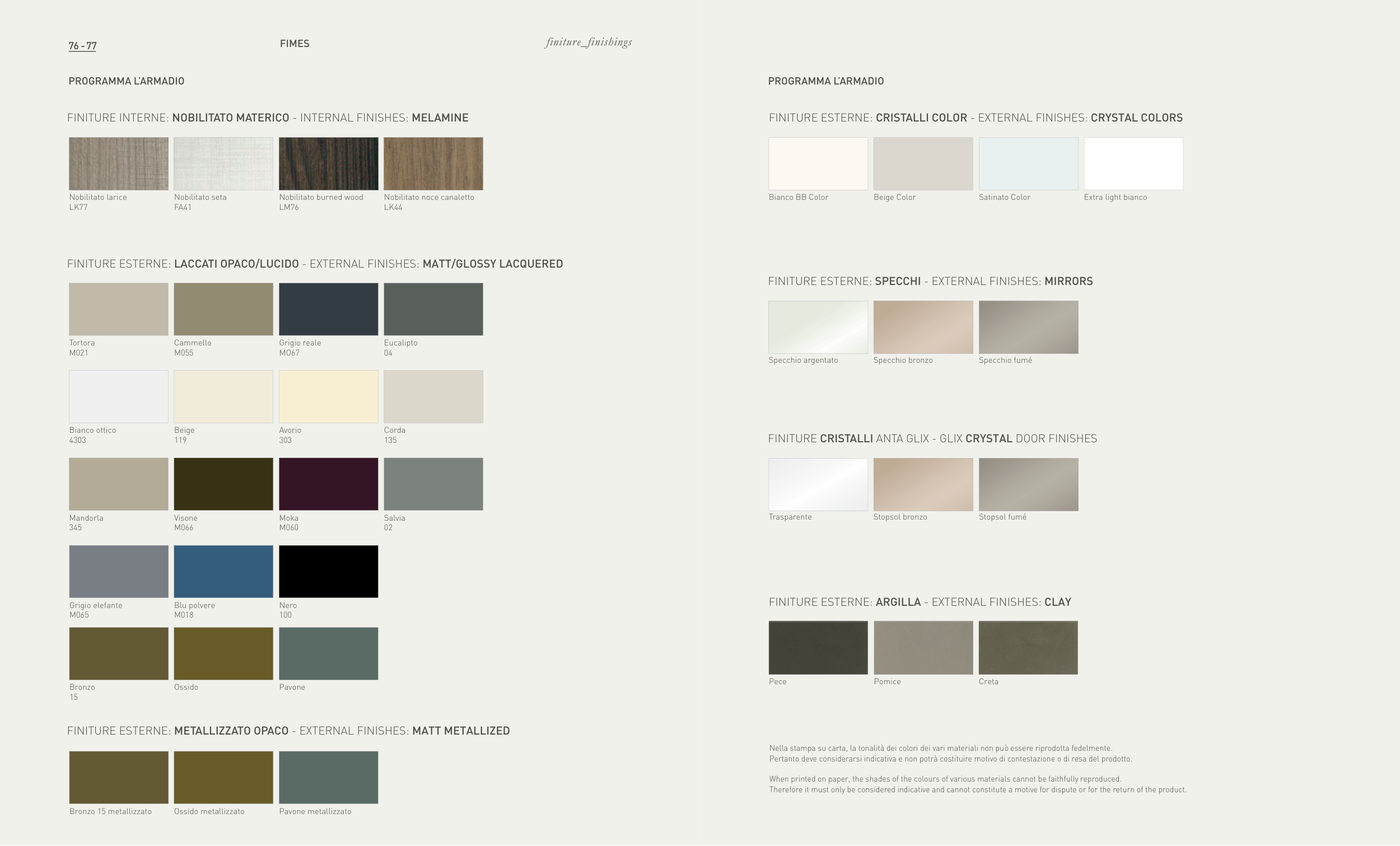 FINITURE ESTERNE: LACCATI OPACO/LUCIDO - EXTERNAL FINISHES: MATT/GLOSSY LACQUERED