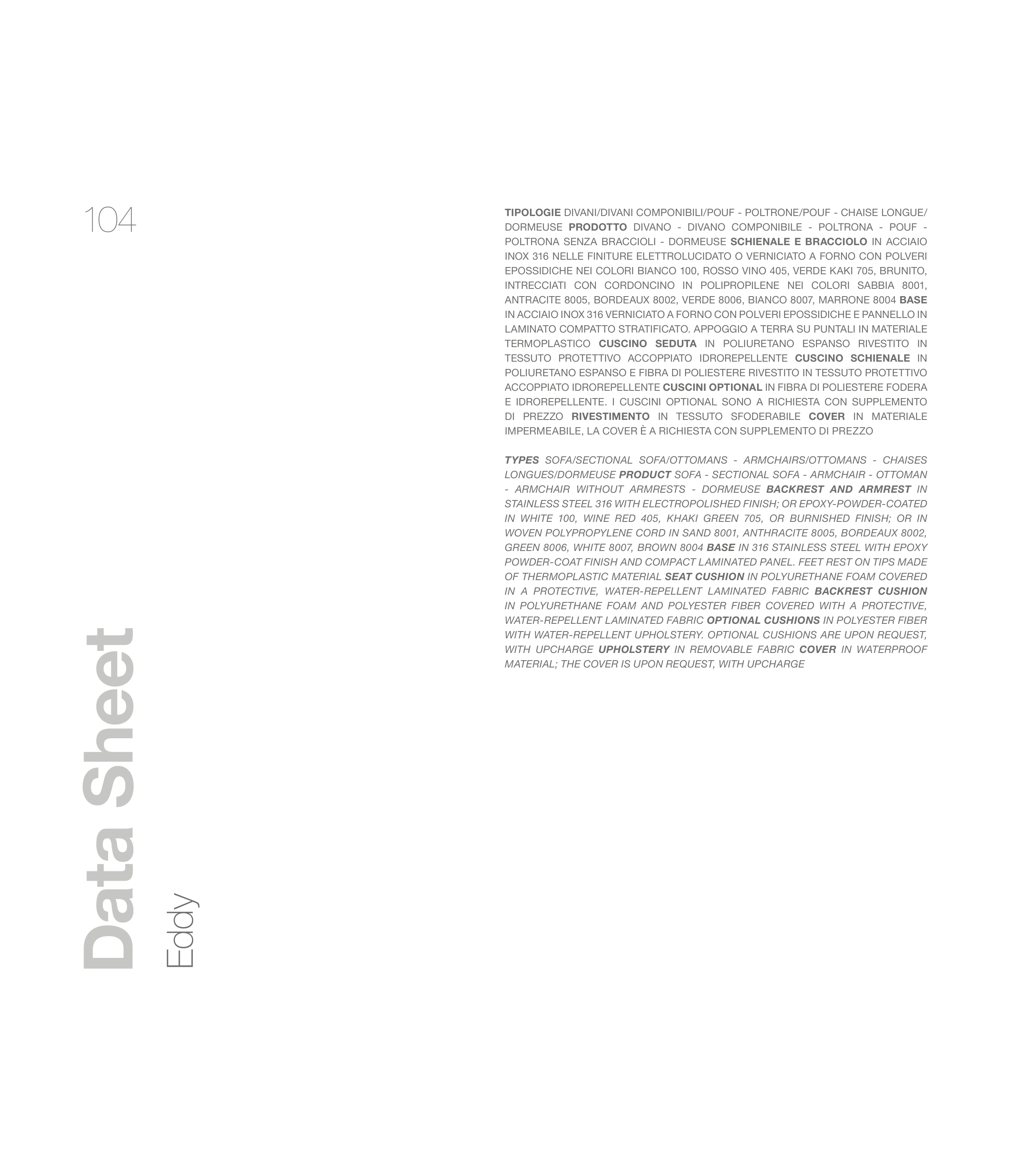E IDROREPELLENTE. I CUSCINI OPTIONAL SONO A RICHIESTA CON SUPPLEMENTO