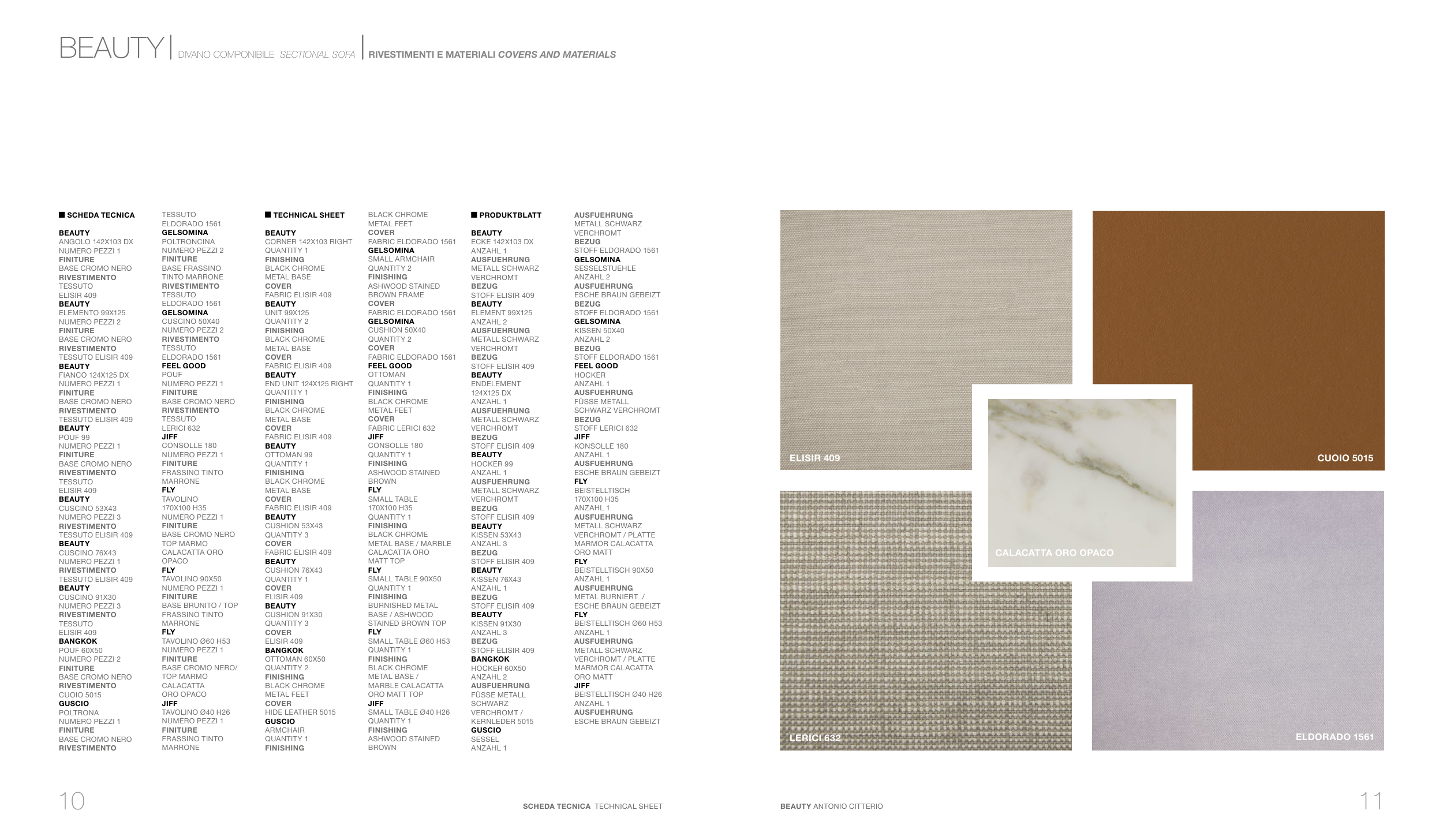 BEAUTY | DIVANO COMPONIBILE SECTIONAL SOFA | RIVESTIMENTI E MATERIALI COVERS AND MATERIALS