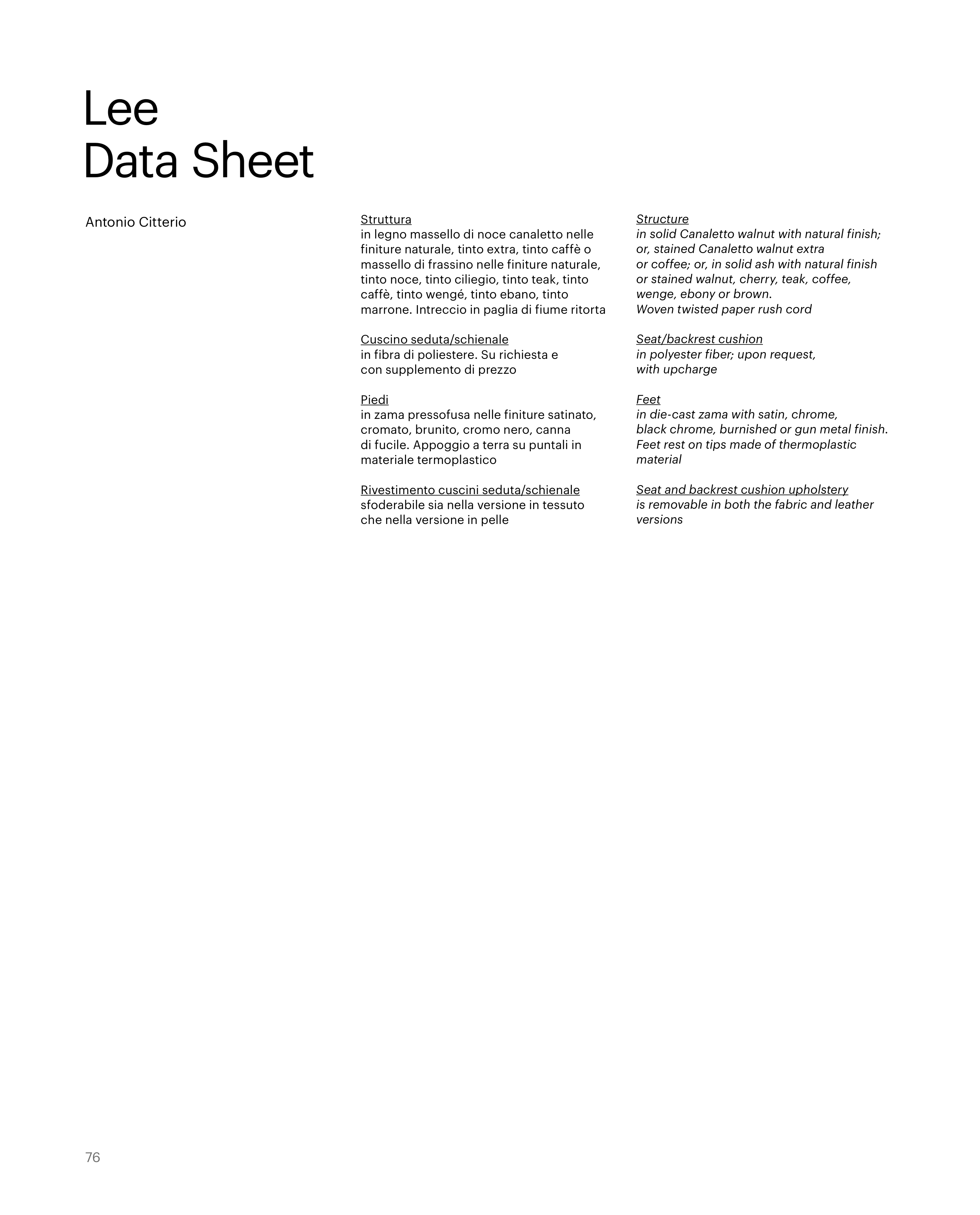 in solid Canaletto walnut with natural finish;