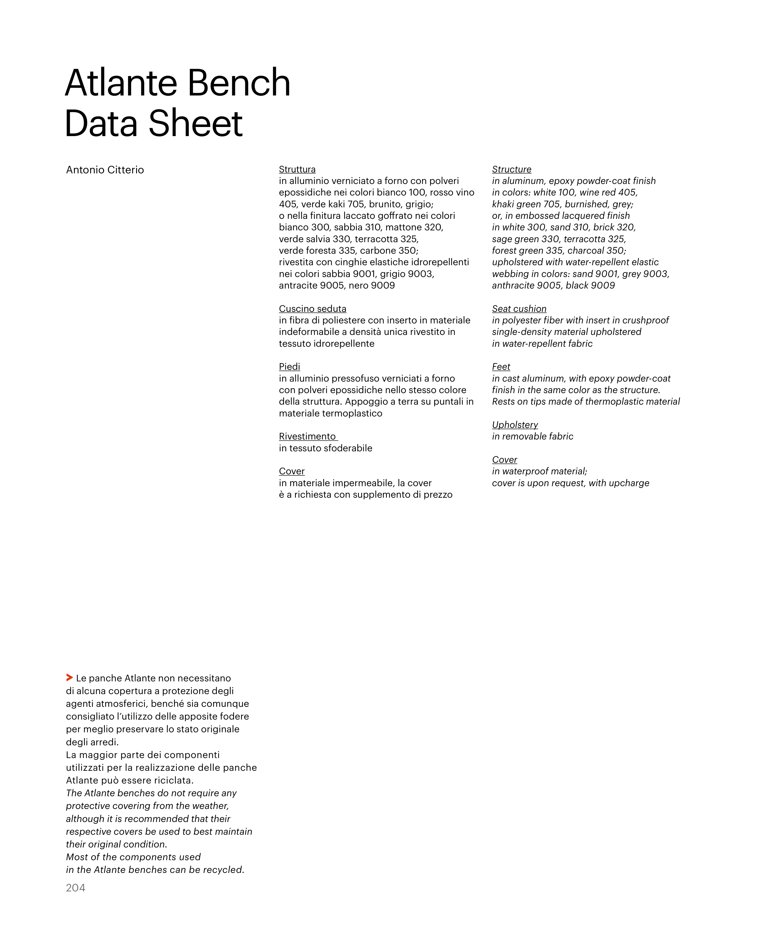 in the Atlante benches can be recycled.